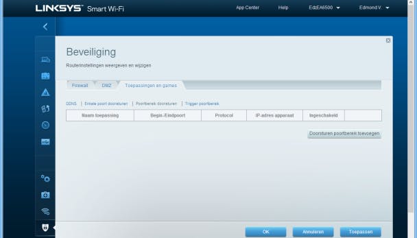 Kijk ook bij de DMZ en het onderdeel voor Portforwarding of Toepassingen en Games. Bij deze laatste onderdelen kun je systemen op het thuisnetwerk opgeven die wel vanaf het internet toegankelijk mogen zijn. Heel veel redenen zijn daar echter niet voor. Verwijder eventuele uitzonderingen die daar opgesomd staan of schakel een regel tijdelijk uit (disable) om te ervaren wat er dan niet meer werkt. Hoe minder uitzonderingen, des te veiliger de bestanden op het thuisnetwerk.