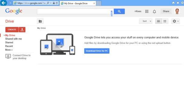 Er is zelfs een nóg makkelijkere manier om je documenten naar Google Drive te uploaden, waarbij je niet meer via de browser hoeft te werken. Nou ja, je moet er wel één keer heen te gaan om even iets te downloaden. Het is namelijk mogelijk een programma op je computer te installeren, waarna je een extra map krijgt. Alles wat je via Windows Verkenner naar die map kopieert, wordt zo automatisch online in je Google Drive geplaatst (als je computer met internet verbonden is). Makkelijker kan haast niet.