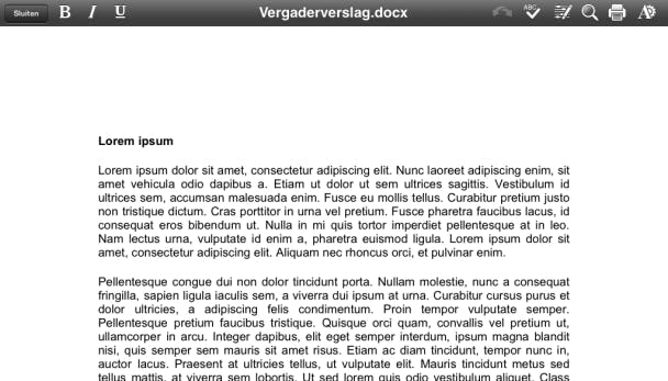 Een handige app waarmee je documenten zowel kunt bekijken als bewerken, is QuickOffice. Het is tevens mooi meegenomen dat deze app zowel beschikbaar is voor Android-tablets als de iPad van Apple. Wie beide soorten tablets in huis heeft of een keer overstapt, hoeft zodoende niet aan een andere app te wennen.