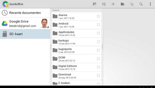 Om een document echt te bewerken, geef je aan in welke app dat moet gebeuren. Je kunt dan alsnog voor voor QuickOffice kiezen. Ongeacht welke dienst je gebruikt, er is altijd een mogelijkheid om bij je documenten te komen om ze te bewerken.