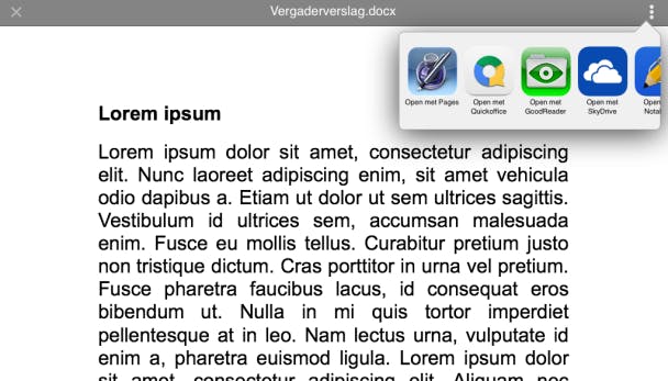 Op een Android-tablet krijg je vaak direct bij het openen van het bestand al de keuze uit een aantal programma's om het document in te bekijken of te bewerken.