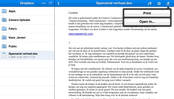 Vanaf de iPad kun je je documenten zelfs printen, indien je printer AirPrint ondersteunt. Veel moderne printers kunnen hier prima mee overweg. Je print dan draadloos vanaf je tablet op de printer, mits beide met hetzelfde draadloze netwerk verbonden zijn.
