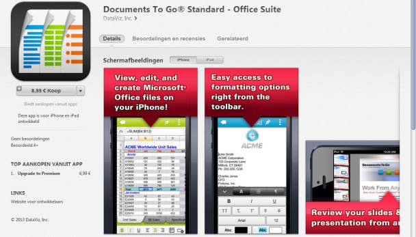 Heb je een iPad en ben je op zoek naar geavanceerdere mogelijkheden om documenten te bewerken, dan kun je eens kijken naar Pages, Numbers en Keynote. Dat zijn Apples alternatieven voor Word, Excel en Powerpoint. Je koopt ze per stuk (voor ongeveer negen euro) en als je recentelijk een iPad hebt gekocht, zijn ze zelfs gratis.