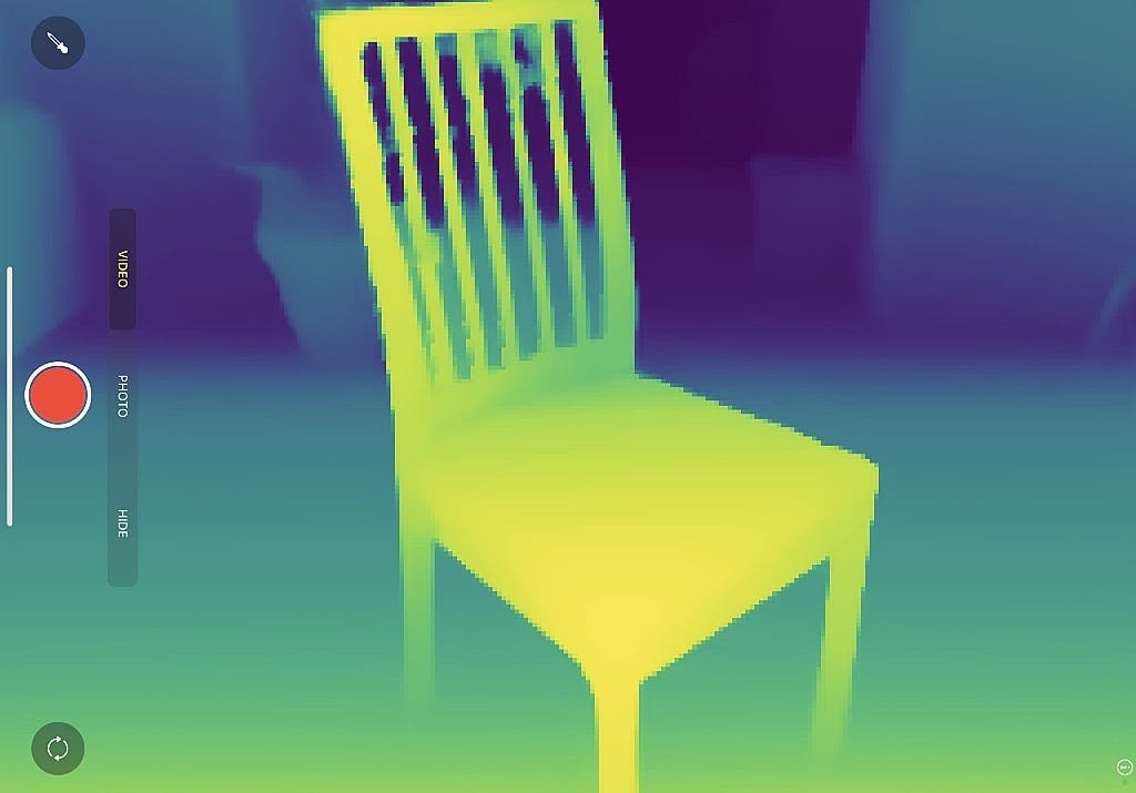 Een ander aardigheidje van Lidar is ‘nachtzicht’. Omdat er een IR-laser gebruikt wordt zie je daar alvast niks van in het donker. En daar waar je met de camera van je apparaat in ’t stikkedonker echt niks ziet, blijkt Lidar met de juiste app een alleraardigst beeld van contouren op te leveren. Niet perfect, maar in geval van nood wel bruikbaar. Al was het maar om niet tegen objecten te botsen. Waarbij dan natuurlijk ook geldt dat als je telefoon of tablet het doen, je ook de beschikking hebt over een ingebouwde LED-lamp. Maar da’s minder leuk natuurlijk. De app Night Vision gebruikt de Lidar-sensor om camera-loos een beeld op te bouwen. Mocht er toevallig nog een heel klein beetje restlicht voorhanden zijn, dan komt dat de beeldkwaliteit ten goede. Indien niet: het werkt dan ook, maar soms is het wel wat abstract. Na een tijdje lukt het echter wel om je weg te vinden. Zonder meer de moeite waard om eens uit te proberen!