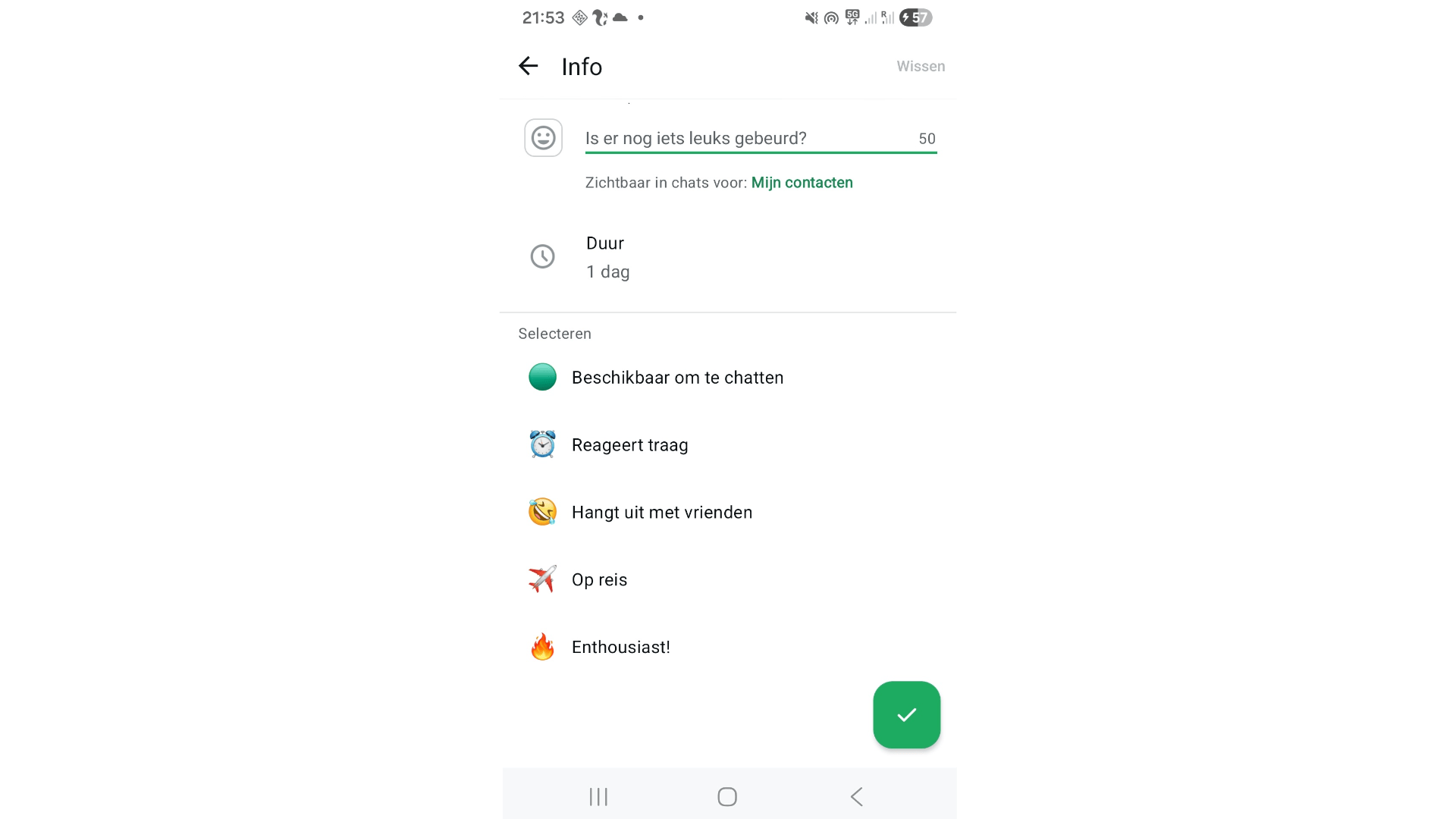 Je profiel in WhatsApp is eigenlijk je digitale visitekaartje en lijkt makkelijk: naam en fotootje instellen en klaar. Maar als slimme gebruiker kun je hier veel meer mee doen om bijvoorbeeld je privacy te bewaken. Het begint bij je naam en je ‘Info’-regel (vroeger heette dit je ‘Status’). Je naam is wat mensen zien als ze jou nog niet in hun contacten hebben staan. Dit pas je simpel aan door op je eigen foto te tikken bij Instellingen. Gebruik die ‘Info’-regel slim. Zet er niet het standaard ‘Hi there, I am using WhatsApp’ neer, maar gebruik hem ook om aan te geven wat je contacten van je kunnen verwachten wat betreft reactiesnelheid op berichten. Pas die status bijvoorbeeld aan naar ‘Alleen bereikbaar tijdens kantooruren’ in geval van een zakelijk nummer of ‘Op vakantie’ om je familie en vrienden te laten weten dat je misschien wat minder vaak reageert. Je kunt ook uit een aantal standaardteksten kiezen, die je ook weer kunt aanpassen.