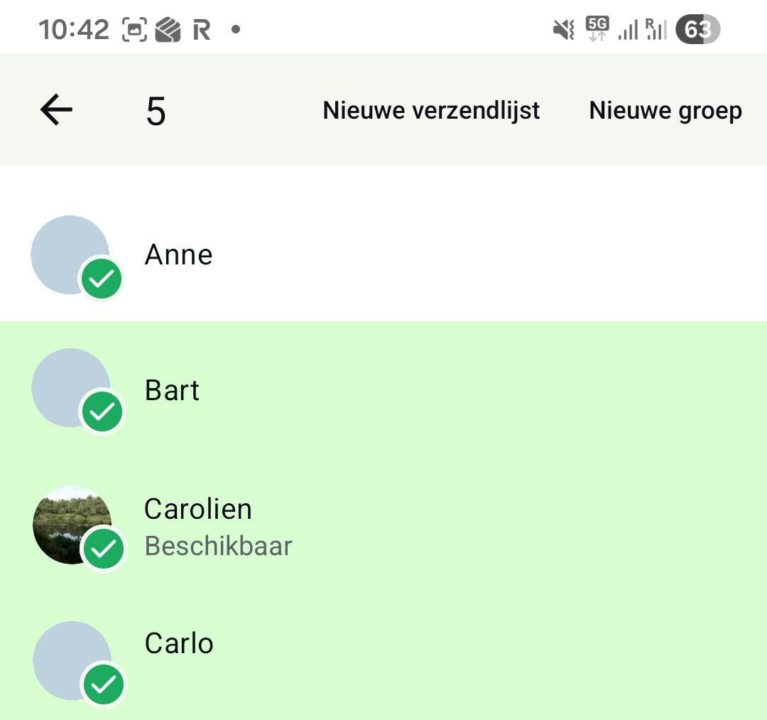 De enige regel is dat de ontvanger jouw nummer ook in zijn of haar telefoon moet hebben opgeslagen. Dit is om spam tegen te gaan. Als ze jou niet kennen, komt het bericht gewoon nooit aan (en jij merkt daar niets van). Gebruik dit dus alleen voor vrienden, familie of klanten die jou kennen, zeker niet voor vreemden. Maak slimme lijstjes aan, zoals ‘Familie’, ‘Vrienden’ of ‘Werk’.
