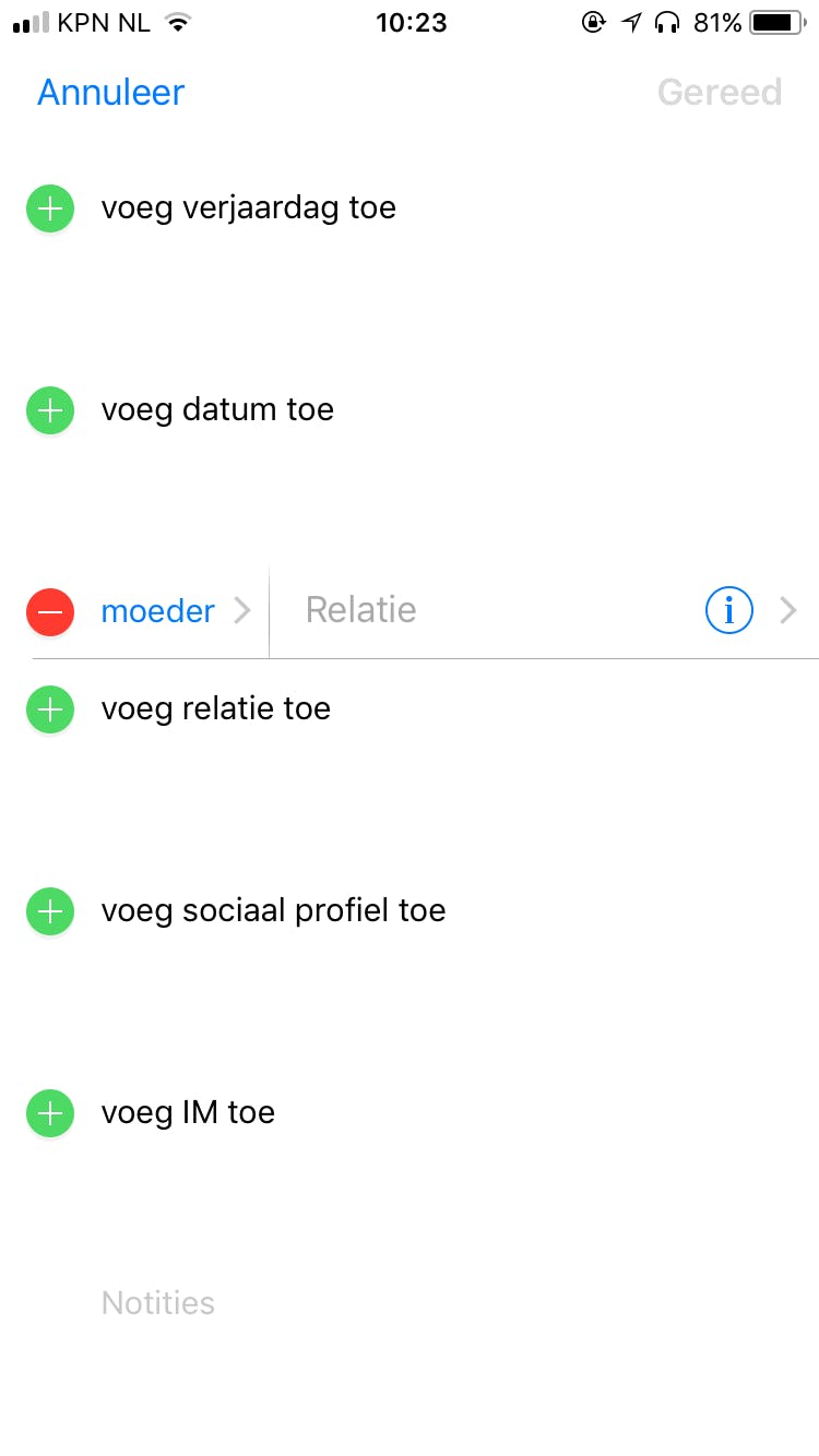 Het is extra handig om relaties aan contactpersonen toe te voegen omdat sommige mensen een naam hebben die door Siri minder goed herkend wordt.