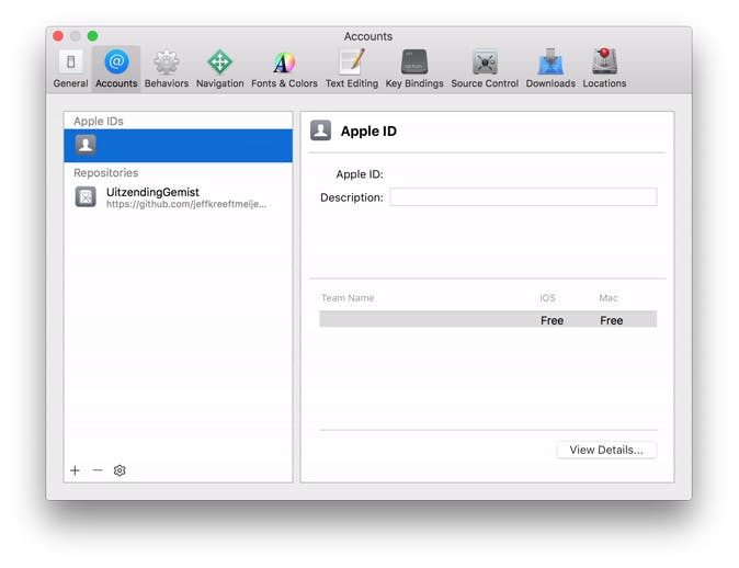 Nadat je Xcode hebt geïnstalleerd moet je hierin inloggen met je ontwikkelaarsaccount. Open hiervoor Xcode en ga naar Xcode > Preferences > Accounts en klik op het plusje linksonder. Via Add Apple ID kun je nu je ontwikkelaarsaccount toevoegen.