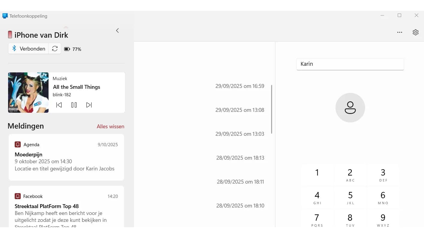 Op de iPhone open je bij de Instellingen de optie Bluetooth. Daar zie je de naam van de gekoppelde Windows 11-pc en lees je dat die via bluetooth verbonden is met je iPhone. Tik hier op de naam van je gekoppelde Windows-pc en kies het i-symbool. Vervolgens zet je in de instellingen van deze bluetooth-verbinding de opties Toon meldingen voor berichten en Synchroniseer contacten aan. Op die manier zal Telefoonkoppeling op de Windows-pc de namen van je contactpersonen tonen bij berichten of telefoongesprekken. In de Telefoonkoppeling-app kun je nu oproepen ontvangen en starten en daarnaast berichten lezen en beantwoorden. In de Telefoonkoppeling beschik je ook over besturingsknoppen om de muziek van de iPhone te besturen. De koppeling blijft bewaard, je hoeft dit proces dus niet telkens opnieuw uit te voeren. Wil je de koppeling verwijderen? Open dan de Telefoonkoppeling-app op de pc, klik op het tandwiel (Instellingen), selecteer je iPhone en kies Verwijderen.