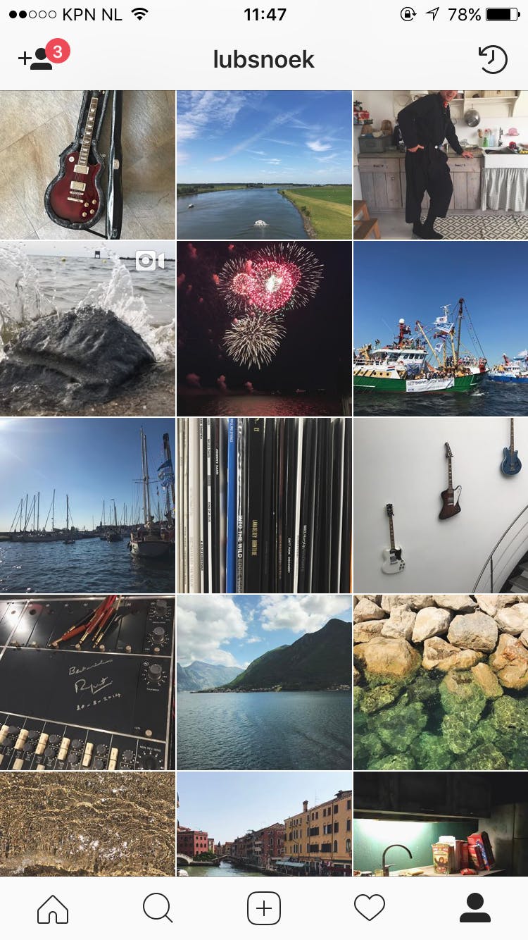 Bij het openen van Instagram, navigeer je naar je Profiel. Die knop vind je rechts onderin het scherm (het poppetje in iOS, je profielfoto in Android).
