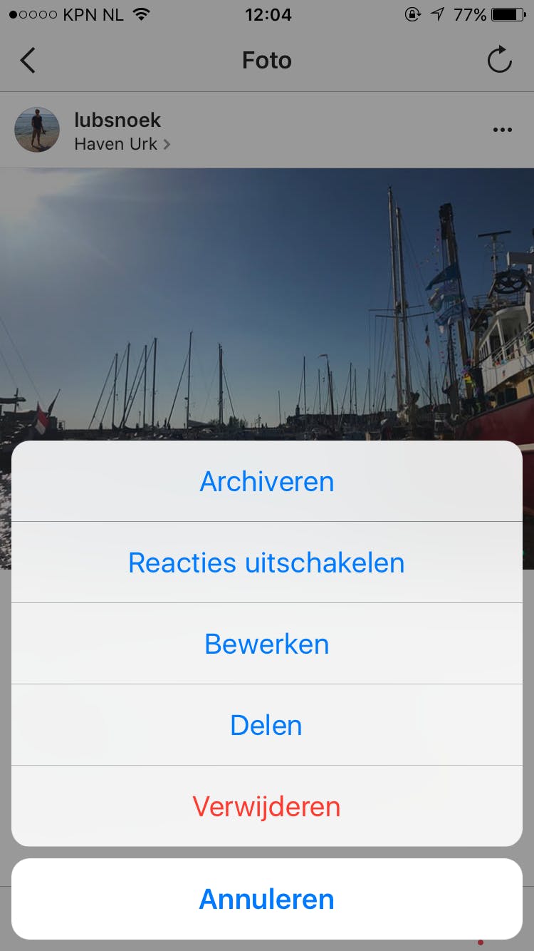 Wil je bepaalde foto's toch helemaal van Instagram af hebben, klik dan op een foto in de Instagram-app die je wilt verwijderen en vervolgens op de drie puntjes rechtsboven in het scherm. Klik vervolgens op Verwijderen.