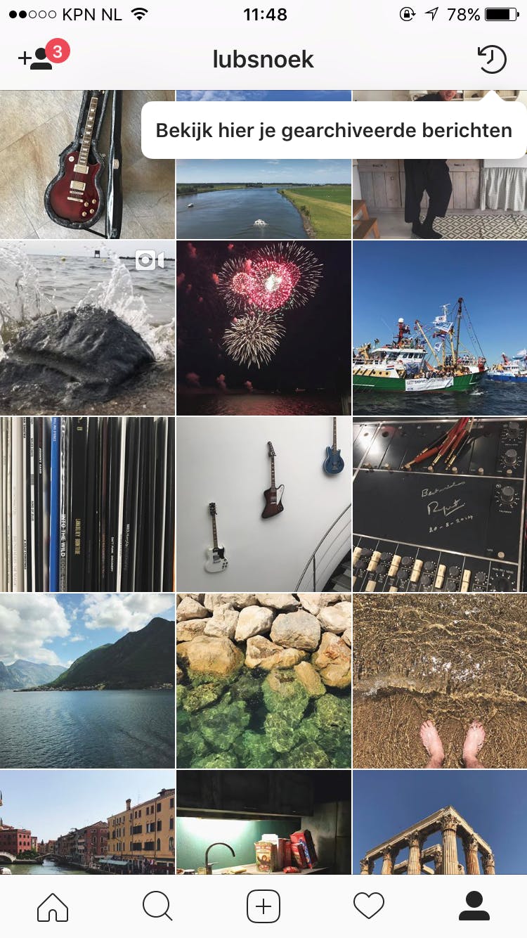 In de map met gearchiveerde berichten kun je de foto’s zien die je hebt gearchiveerd. Via dezelfde optieknop waarmee je een bericht archiveert, kun je nu ook selecteren In profiel weergeven. Hiermee verplaats je het bericht van je Archief terug naar je Profiel.