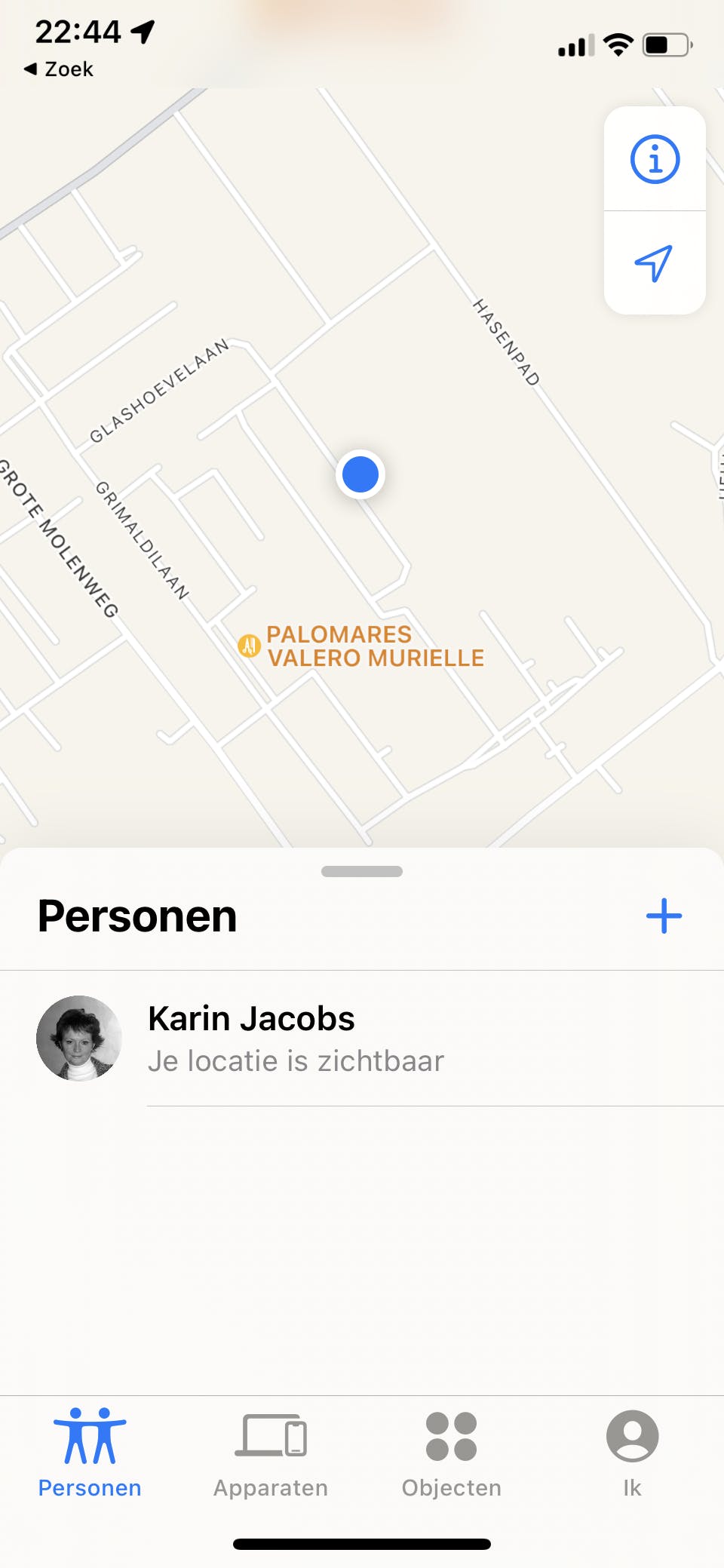 Als je wilt weten waar iemand van het gezin is, gebruik je de app Zoek mijn die standaard op iedere iPhone en iPad staat. In het tabblad Personen tik je op de persoon in de lijst en dan wordt zijn locatie weergegeven. Bovendien kun je ook de locatie achterhalen door in de app Berichten tijdens een conversatie op de foto van de contactpersoon te tikken.