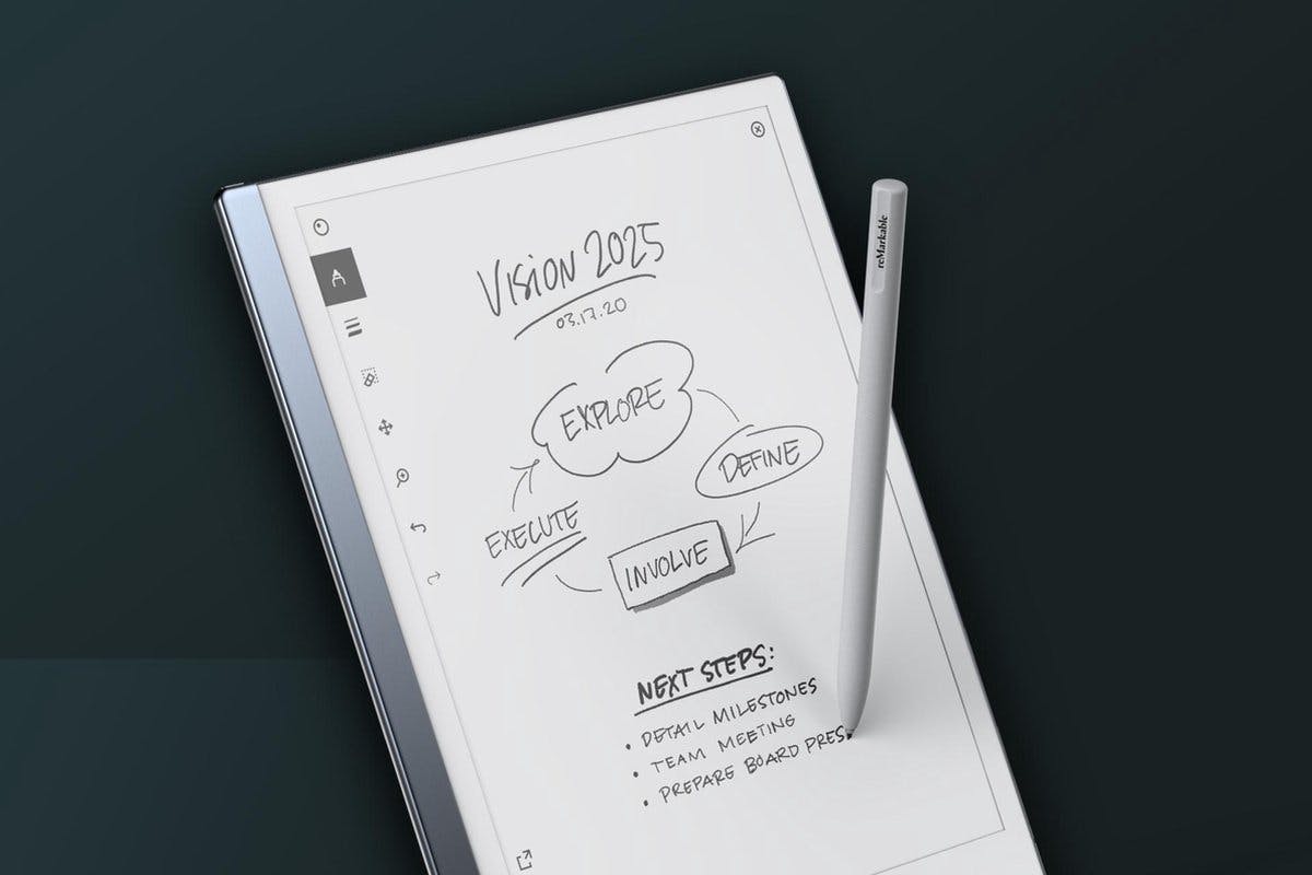 Wil je dat notities direct digitaal zijn, dan is een tablet zoals de iPad Pro met een Apple Pencil een bekende maar prijzige optie. Een alternatief dat het gevoel van papier veel beter benadert, is de ReMarkable 2. Dit product, dat begon als crowdfunding-campagne, kun je zien als kruising tussen een tablet en een e-reader. Kenmerkend is het e-inkscherm waarop je bijvoorbeeld pdf-bestanden kunt bekijken maar ook notities en schetsen kunt maken met een pen (al moet je je daarbij wel beperken tot zwart-wit). De ReMarkable kost 399 euro, maar je zult er nog wat prijzige accessoires bij moeten kopen, zoals de speciale markerpen. Voor een iPad Pro met Apple Pencil moet je nog iets dieper in de buidel tasten.