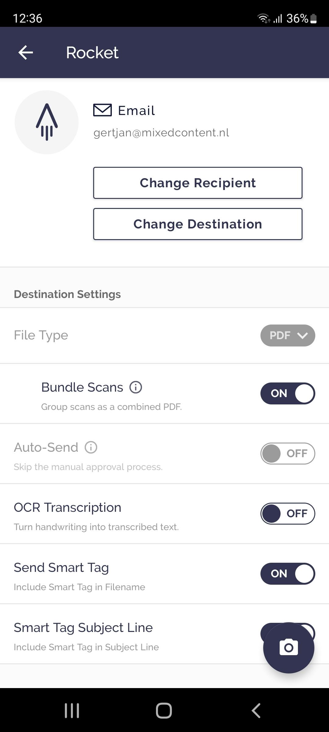 Wat wel verschilt is de app. Die van Rocketbook is duidelijk beter en krijgt ook veel betere beoordelingen dan de apps van concurrenten. De instructies helpen je snel op weg bij het instellen van een bestemming en het maken van je eerste scan. Op elke pagina zie je ook symbolen die corresponderen met een bepaalde bestemming. Je kunt ze gewoon aanvinken op je pagina zelf. Op die manier beslis je dus al voor het scannen of die pagina naar bijvoorbeeld je e-mailadres moet worden gestuurd of juist opslagen in de cloud. Je kunt verder ook pagina’s bundelen in een pdf’je of tekstherkenning gebruiken.