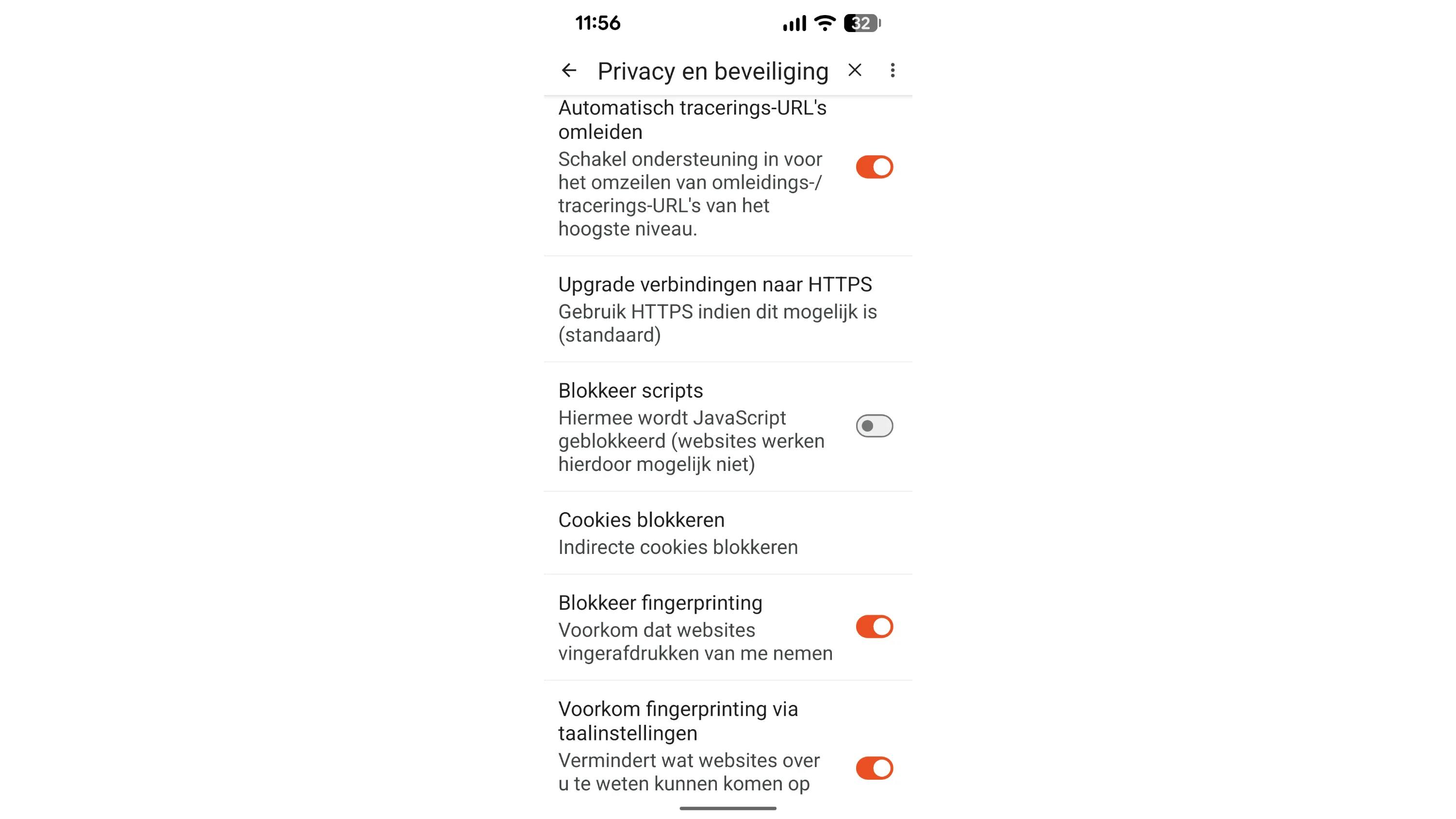 De browser vormt een van de grootste bronnen van tracking. Overweeg daarom om Chrome te vervangen door Firefox, bij voorkeur met extra privacy-add-ons zoals NoScript en uBlock Origin of Privacy Badger, of kies een andere browser met ingebouwde traceerbescherming, zoals Firefox Focus of Brave. Ga voor maximale privacy en anoniem browsen met Tor Browser, eveneens beschikbaar in de Play Store.