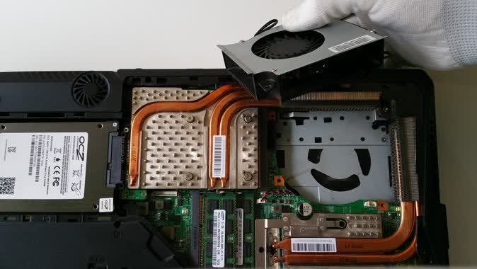Soms kun je de ventilator en het koellichaam niet bereiken zonder het hele moederbord er uit te halen. Dit raden we je niet aan. Als de laptop wel open kan, gaat dit gewoonlijk via een paneel aan de onderzijde of kun je de hele onderzijde verwijderen. Sluit de laptop volledig af en verwijder (indien mogelijk) de batterij voordat je met de klus begint. Schroef het paneel aan de onderzijde los en blaas met perslucht het zichtbare stof weg. Vaak is de ventilator een los onderdeel dat je kunt losschroeven. Tussen de fan en het koelelement zit geregeld een dikke laag stof. Je kunt het stof met de hand wegtrekken als de fan eruit is. Mag de laptop niet door de gebruiker worden geopend, probeer dan met wat perslucht tussen de openingen te blazen. Voorkom wel dat de fan gaat draaien, want anders gaat deze stuk.
