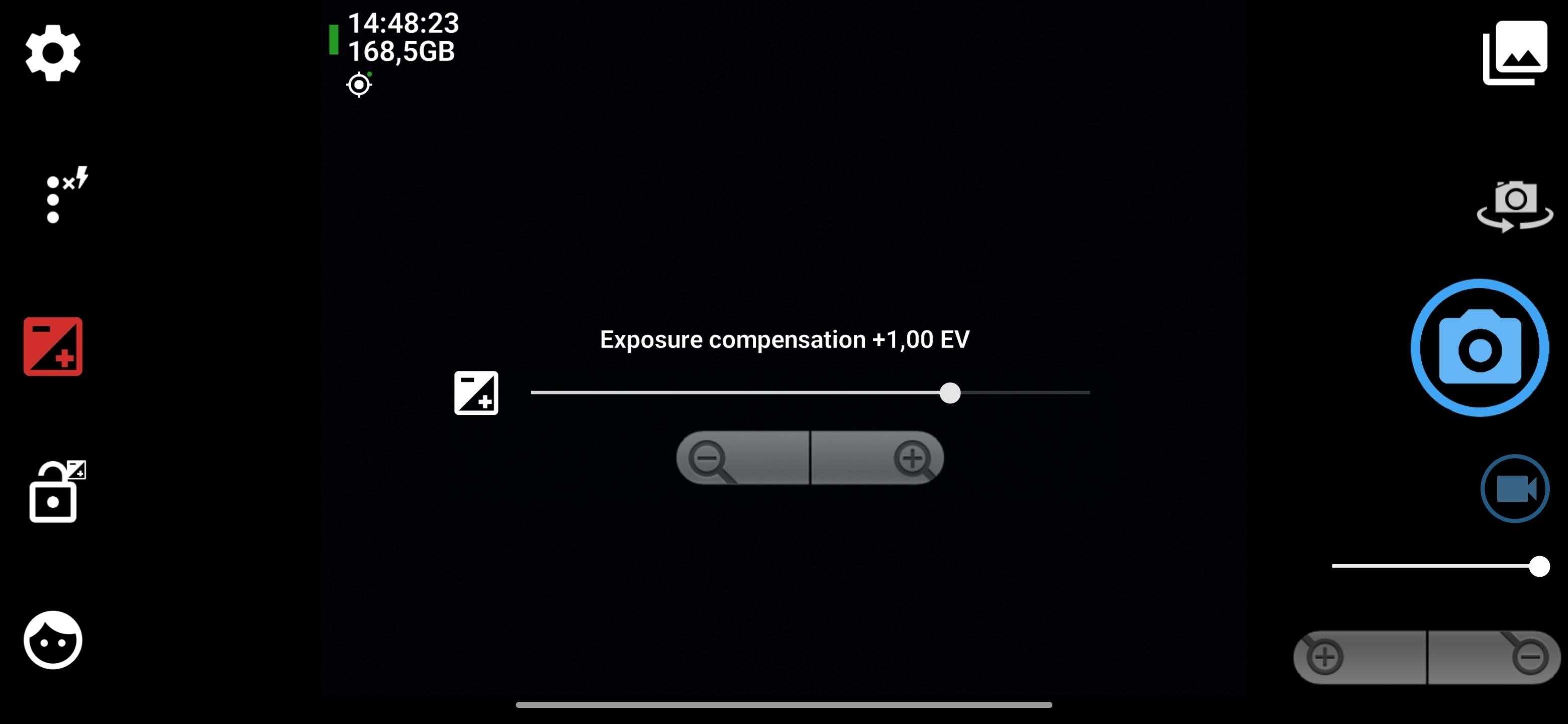De basis om een foto te maken is in Open Camera hetzelfde als bij de standaardcamera. Je richt de camera ergens op, tikt op het scherm om scherp te stellen en drukt op de cameraknop. Vind je de foto te licht of te donker? Tik dan op het pictogram van het plusminteken en gebruik het schuifbalkje om de helderheid bij te stellen.
