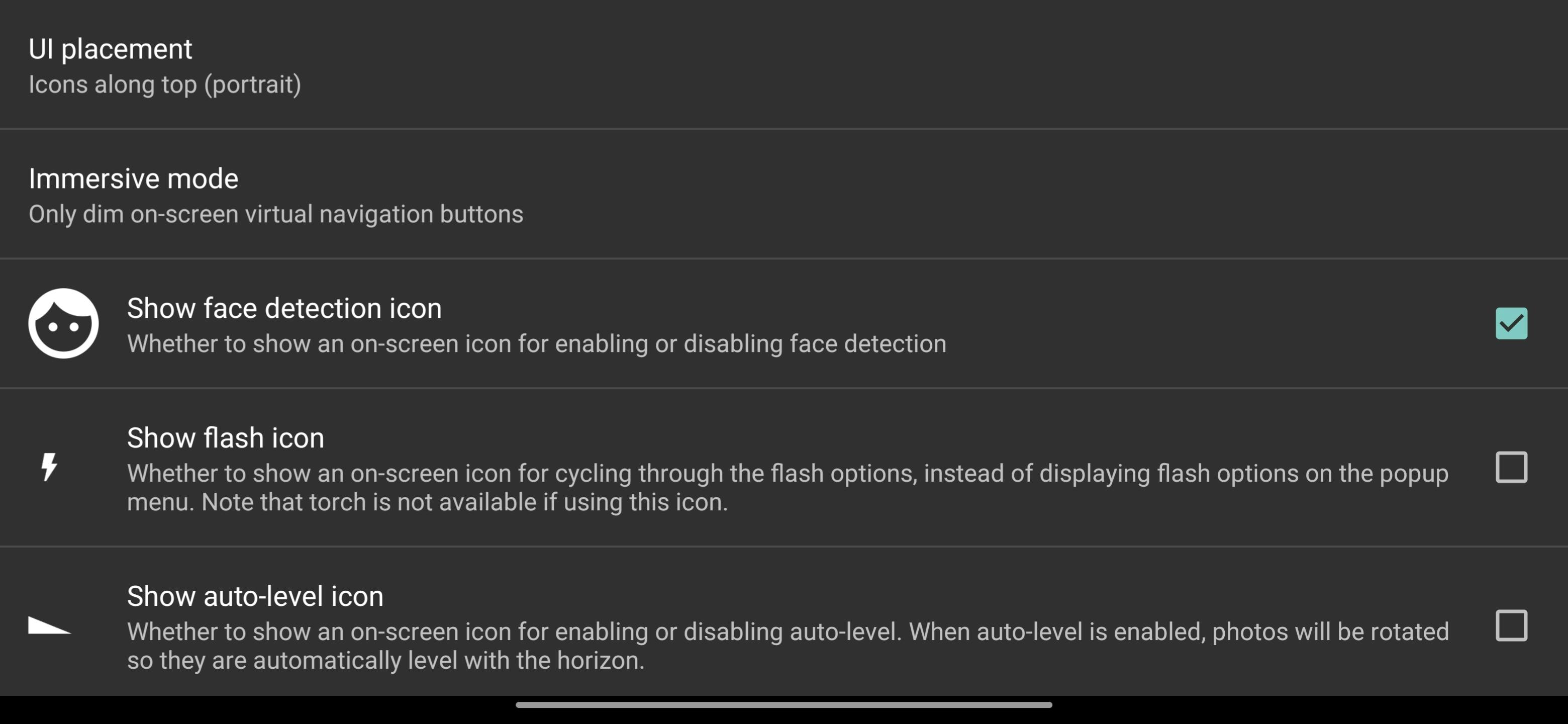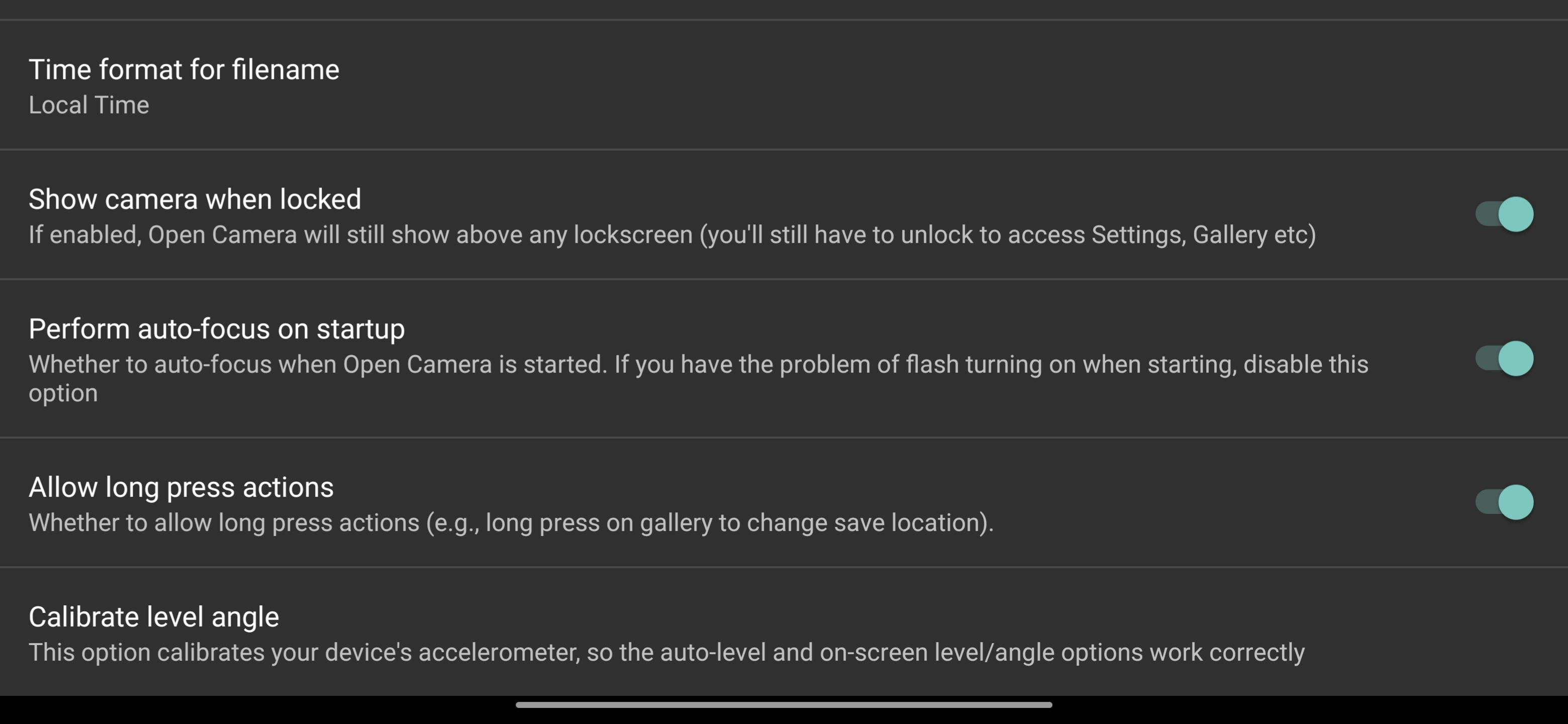 Onderaan het onderdeel Photo mode is Auto-level nog een behulpzame functie. Zet je dit aan, dan zorgt Open Camera ervoor dat je foto’s altijd netjes recht zijn. Nooit meer een scheve horizon dus! Omdat het beeld een beetje moet worden bijgesneden om een schuine foto alsnog recht te zetten, raak je hierbij wel een beetje resolutie kwijt.
