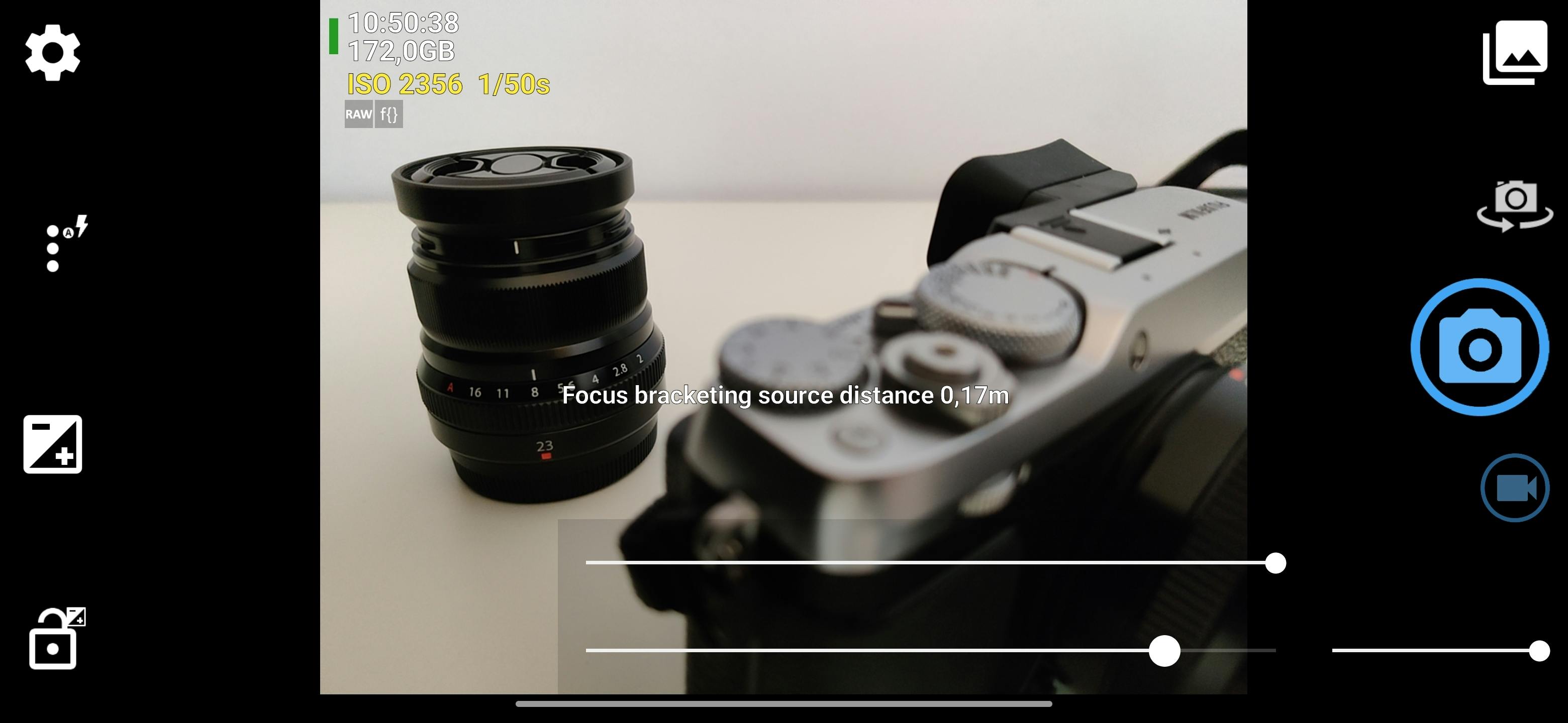 Zodra je op de blauwe cameraknop tikt, maakt de app drie foto’s waarbij de scherpte automatisch opschuift van het begin- naar het eindpunt. Dit is onder meer erg bruikbaar bij close-ups of macrofoto’s, waarbij scherpstellen altijd erg lastig is. Je stelt dan bijvoorbeeld scherp op de voor- en achterzijde van een bloem of paddenstoel en kijkt achteraf wat de beste foto is. Of je voegt ze weer samen in een fotobewerker om alsnog het volledige onderwerp scherp te krijgen. Ook leuk, zo maak je een foto waarop de achtergrond een beetje wazig is en krijg je er meteen ook eentje met een onscherpe voorgrond. Let er wel op dat je de telefoon hiervoor moet neerzetten, uit de hand lukt dit niet.