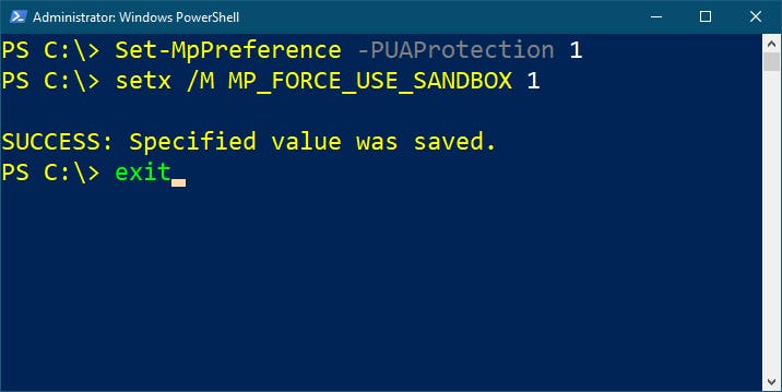 Om Windows Defender nog steviger in het zadel te houden, kun je het via een ander PowerShell-commando in een beveiligde ‘sandbox’-omgeving draaien: