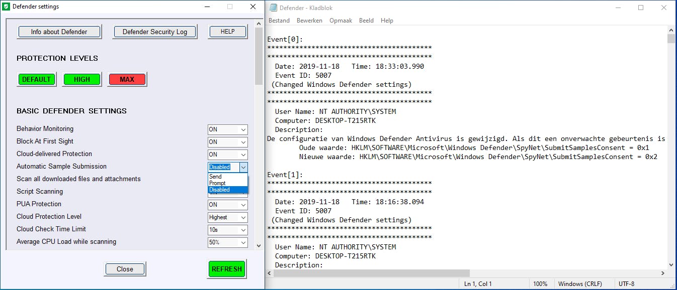 Om een wijziging in ConfigureDefender door te voeren, druk je op de Refresh-knop en herstart je Windows.
