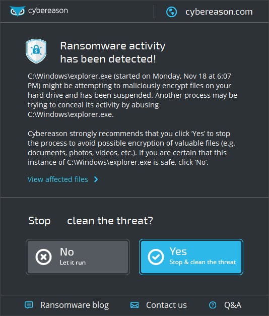 De ingebouwde ransomware-bescherming van Windows vinden we zelf ietwat omslachtig. We vonden een prima alternatief in de vorm van Cybereason RansomFree. Deze tool wordt weliswaar niet meer doorontwikkeld, maar je kunt hem via Google nog wel opduikelen. Het programma functioneert nog altijd prima. De tool nestelt zich bescheiden op de achtergrond, creëert op diverse ‘strategische’ locaties (die snel in het vizier komen van ransomware) dummy-datamappen en zodra een proces hierin een bestand tracht te wijzigen (bijvoorbeeld versleutelen) duikt er een pop-upvenster op zodat je het proces direct kunt beëindigen en er onderzoek naar kunt doen.