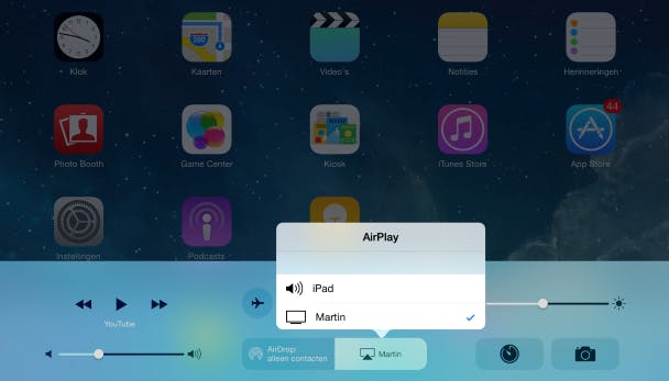 Het mirroren van je iPad is nu kinderlijk eenvoudig. Je hebt er niet eens meer een app voor nodig. Schakel je iPad in en veeg met je vinger van beneden naar boven om het bedieningspaneel op te roepen. Daar zie je onderin de optie AirPlay (naast AirDrop). Druk op deze knop en selecteer vervolgens de naam van de computer die je zojuist hebt ingegeven in Mirroring360. Schakel vervolgens de optie Synchroon in, om de inhoud van je iPad weer te geven op je pc.