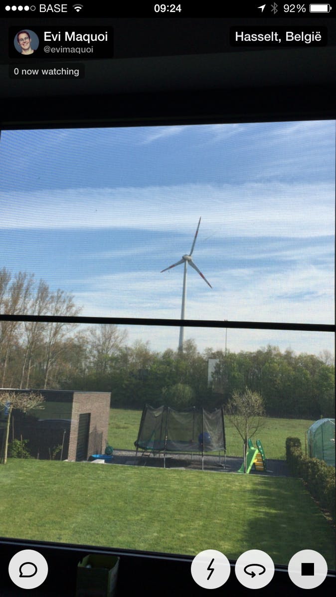 Vanuit het Meerkat-startscherm krijg je een overzicht van live streams. Eén keer klikken is voldoende om te starten met kijken. Met de knop met het tekstballonnetje links onderaan kun je een reactie achterlaten. Je ziet ook wie er nog kijkt en welk commentaar andere Meerkat-gebruikers geven.