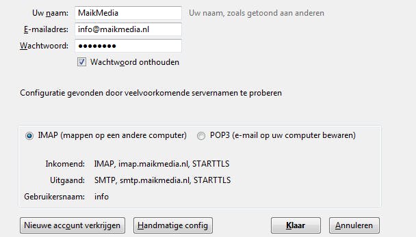 Dit gaat helaas ook nog weleens fout, dus controleer altijd zelf de instellingen. Je gebruikt bijvoorbeeld Thunderbird of MS Outlook om e-mail via het IMAP-protocol op te halen. Ook smartphones en tablets hebben altijd een mail-app waarmee je e-mail op basis van dit protocol kunt lezen.