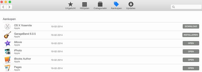 Log op je computer in op iTunes met de Apple ID waarmee je de oorspronkelijke aankoop gedaan hebt. Ga vervolgens naar de App Store en druk op Aankopen. Zorg dat Mijn aankopen geselecteerd is, zodat je alles te zien krijgt.