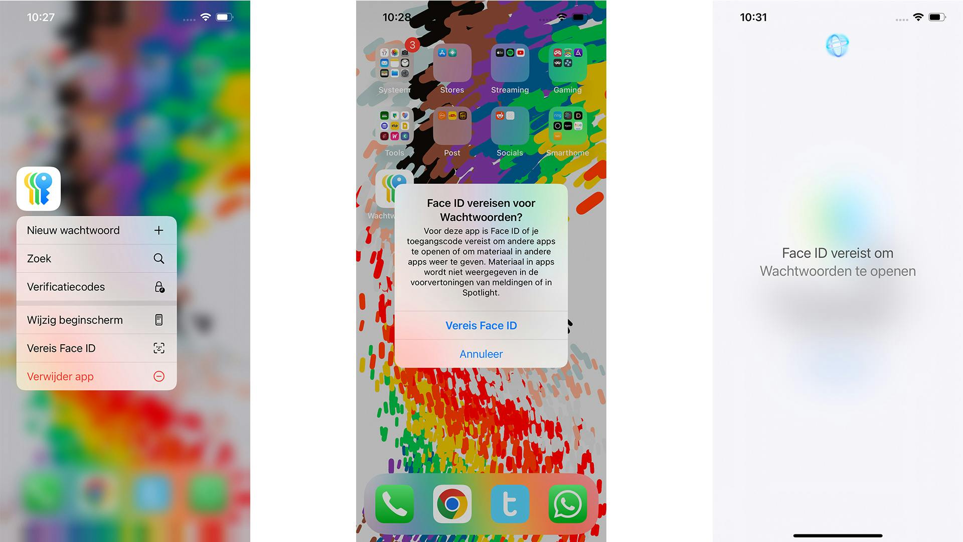 En dat was het! Nadat je de bovenstaande stappen hebt doorlopen en je de app in kwestie probeert te openen, komt de boodschap in beeld dat de app beveiligd is met Face ID of Touch ID. Je hoeft dan alleen je eigen gezicht of je vingerafdruk te scannen om de app te openen. Als je deze stappen wil terugdraaien, dan selecteer je op punt drie Vereis Face ID niet (of Vereis Touch ID niet). Je hoeft dan niet nogmaals je gezicht te scannen om de keuze te bevestigen; dat gebeurt direct.