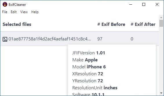 Je staat ervan te kijken hoeveel extra informatie er in een foto zit die je met een smartphone of digitale camera neemt. We hebben het dan niet alleen om informatie als het merk en model van de camera, de beeldresolutie, de lichtbron enzovoort, maar ook over heel wat privacygevoelige informatie, zoals het tijdstip en de locatie. Hierdoor vertel je misschien aan de hele wereld waar je woont en waar je kinderen spelen. ExifCleaner beschermt je anonimiteit door deze gegevens te verwijderen. De software is gratis en opensource, het programma is te downloaden voor Windows, macOS en Linux. Nadat je de software hebt binnengehaald van www.exifcleaner.com sleep je het afbeeldingsbestand in het venster. ExifCleaner vertelt je hoeveel extra informatie in de foto te vinden is en wat er na de poetsbeurt overblijft. In principe zou die waarde na de ingreep altijd nul moeten zijn.