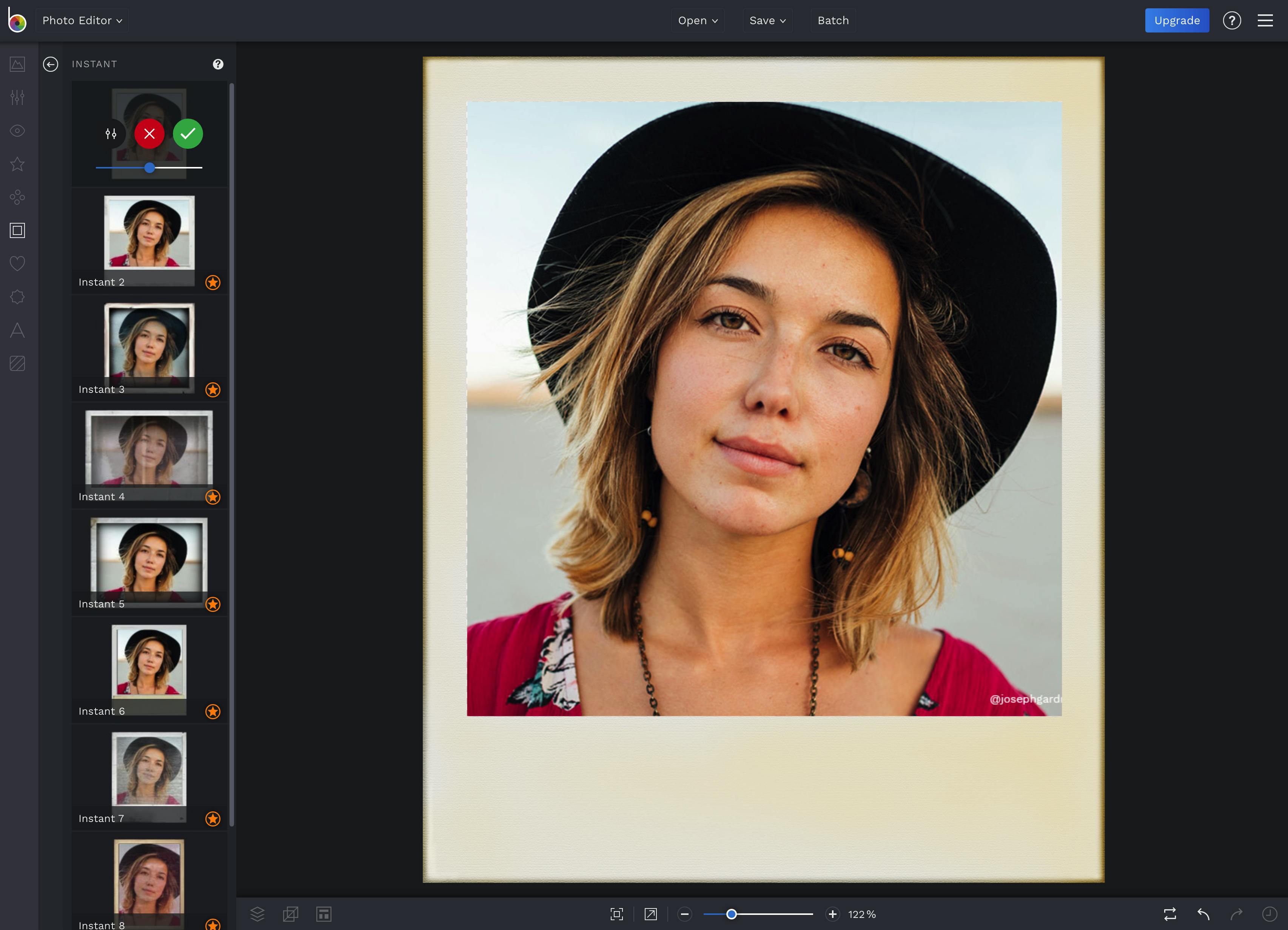 Voor de online editor BeFunky hoef je je niet eens te registreren en ook hier zijn de verschillende stijlen verdeeld in sets: decoratief, vintage, kantwerk, handgeschilderd en grungy. Van iedere set mag je het eerste ontwerp gratis gebruiken, de overige frames zijn gemarkeerd met een sterretje. Dat betekent dat ze bij een premium-account horen. Voor een upgrade van ongeveer 5 dollar per maand heb je veel meer mogelijkheden. Maar de kwaliteit is telkens erg goed. BeFunky is trouwens ook beschikbaar als iOS- en Android-app en werkt samen met de bekende socialmediasites.