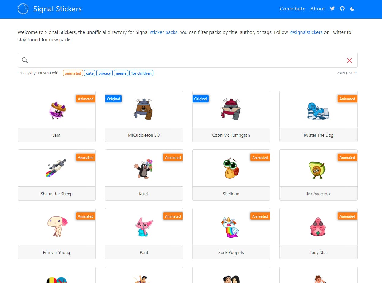 Toch niet helemaal tevreden over het aanbod in de Signal-app, dan kun je ook (bewegende) stickers downloaden en importeren via derde partijen. De website Signal Stickers biedt meer dan 2.400 stickerpakketten en is dan ook de beste manier om op zoek te gaan naar nieuwe stickers.