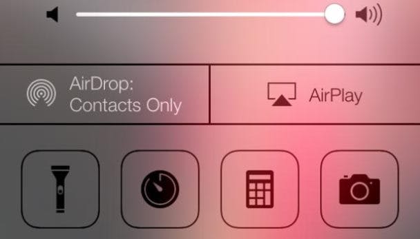 Ga naar het nieuwe iOS7 Controlecentrum door met je vinger op het home screen omhoog te swipen. Als je twee keer tikt kun je AirDrop in- of uitschakelen. Schakel meteen ook wifi en Bluetooth uit wanneer je die functies niet gebruikt om extra energie te besparen.