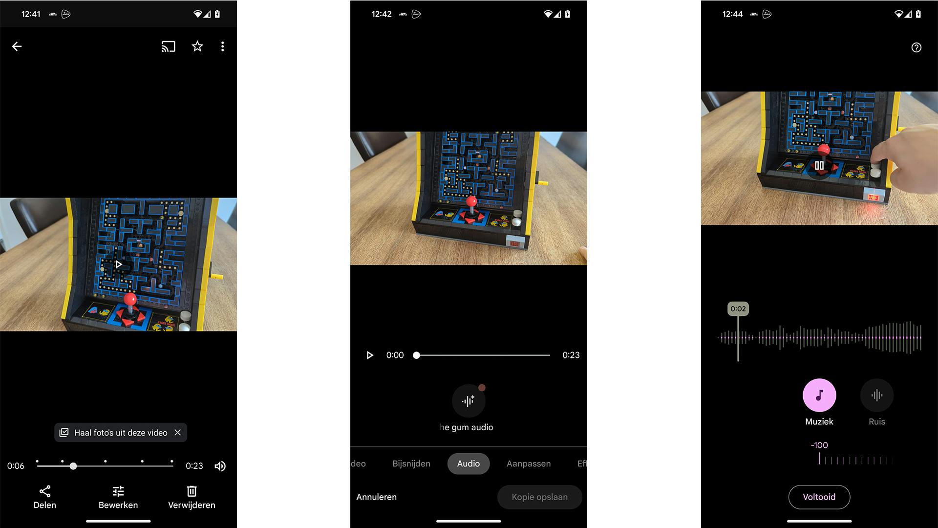 Tik vervolgens op Magische gum audio en neem de boodschap van Google even door. Vervolgens kun je via de schuifbalk onderin in realtime luisteren naar de veranderingen die je doorvoert. Je kunt bijvoorbeeld achtergrondmuziek of ruis van nul tot honderd procent minimaliseren. Er is ook een Autoknop, waarmee je het werk uit handen geeft aan de app. Beluister het resultaat. Ben je tevreden? Dan kun je de video opslaan met de nieuwe geluidsinstellingen. Je slaat dan een kopietje op, zodat het originele bestand behouden blijft. Zo raak je dus niets kwijt binnen dit proces.