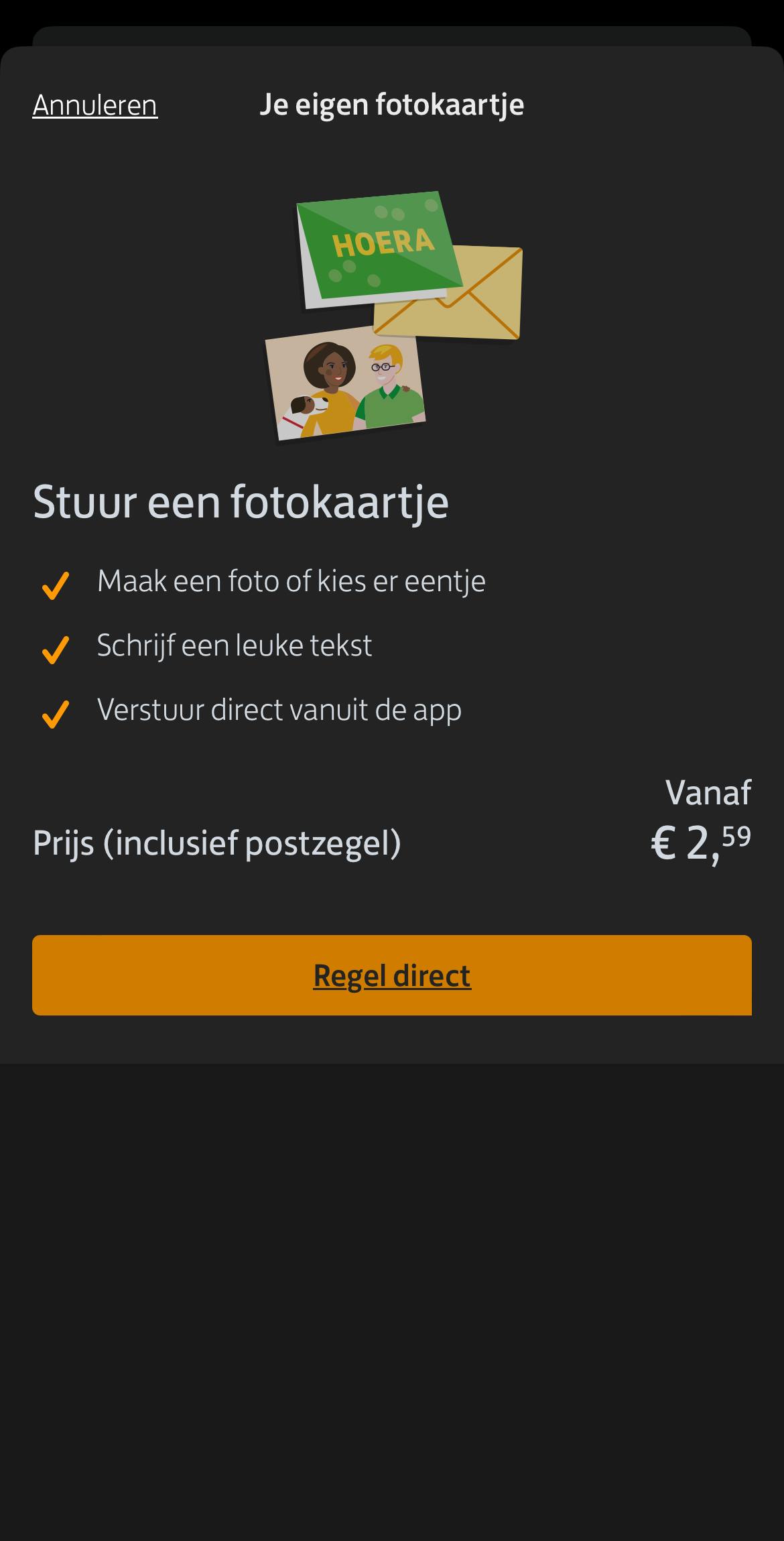 De PostNL-app maakt het nu nog makkelijker om een persoonlijke kaart te sturen. Met de fotokaart-functie kun je snel en gemakkelijk een foto veranderen in een ansichtkaart. Of het nu een spontane selfie is of een familiefoto, je maakt er in een paar stappen een unieke kaart van. Open de app, selecteer Fotokaartje in het menu Versturen en ga aan de slag. Kies een foto, schrijf er iets persoonlijks bij en vul het adres in waar de kaart naartoe moet. De betaling verloopt veilig via iDEAL. Dankzij de samenwerking tussen PostNL en Hallmark wordt je kaart professioneel gedrukt en bezorgd.