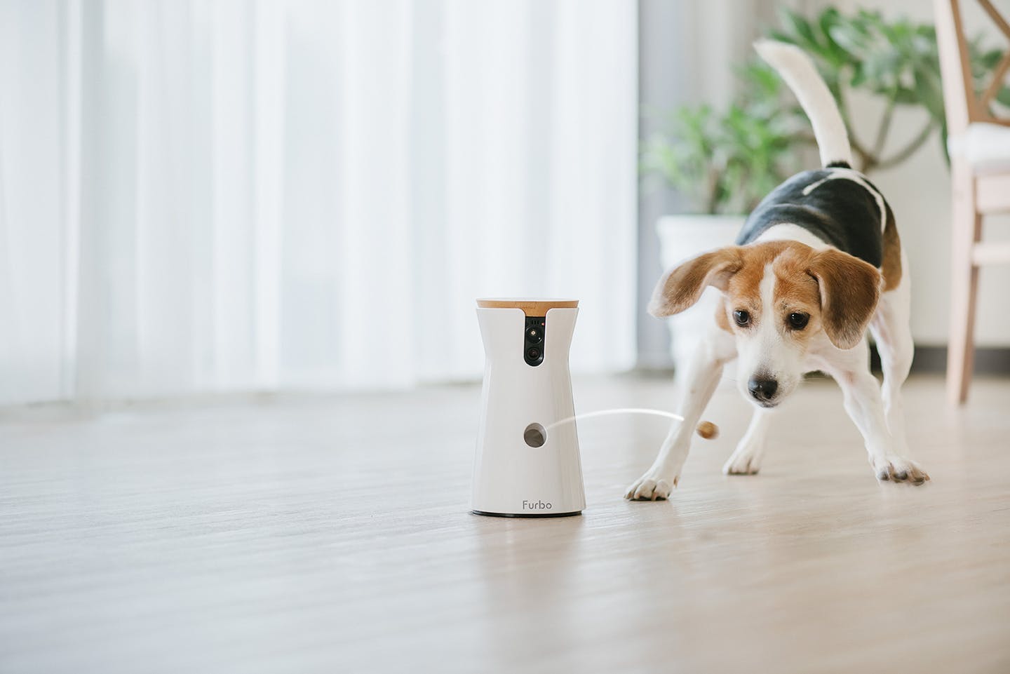Als hondenbezitters ’s ochtends de deur achter zich dichttrekken om naar hun werk te gaan, blijft hun harige vriendje meestal alleen achter. Dan begint voor het huisdier het lange wachten totdat het baasje weer thuiskomt en aandacht (en lekkers) geeft. Wat ze in die tussentijd in huis uitspoken, is vaak een groot mysterie. Maar niet als je de Furbo Hondencamera in de woonkamer hebt staan. Het is een witte cilinder (ongeveer even hoog als een pak melk, maar dubbel zo breed) met een bamboe bovenkant. Erin zit een Full-HD-camera, een microfoon en luidspreker én een handige feature. De Furbo staat in verbinding met je wifi-netwerk en daarmee ook met de app op de telefoon van het baasje. Mocht de hond gedurende de dag blaffen of janken dan wordt er een berichtje verstuurd met de vraag of je even wilt kijken wat er aan de hand is. De Furbo schakelt dan in en je krijgt live beeld en geluid. Nu kun je tegen je blaffende viervoeter praten om ’m gerust te stellen. Als je dan vindt dat je metgezel wel een beloning heeft verdiend, lanceer je met een simpele druk op de knop in de app een hondensnoepje uit de Furbo!