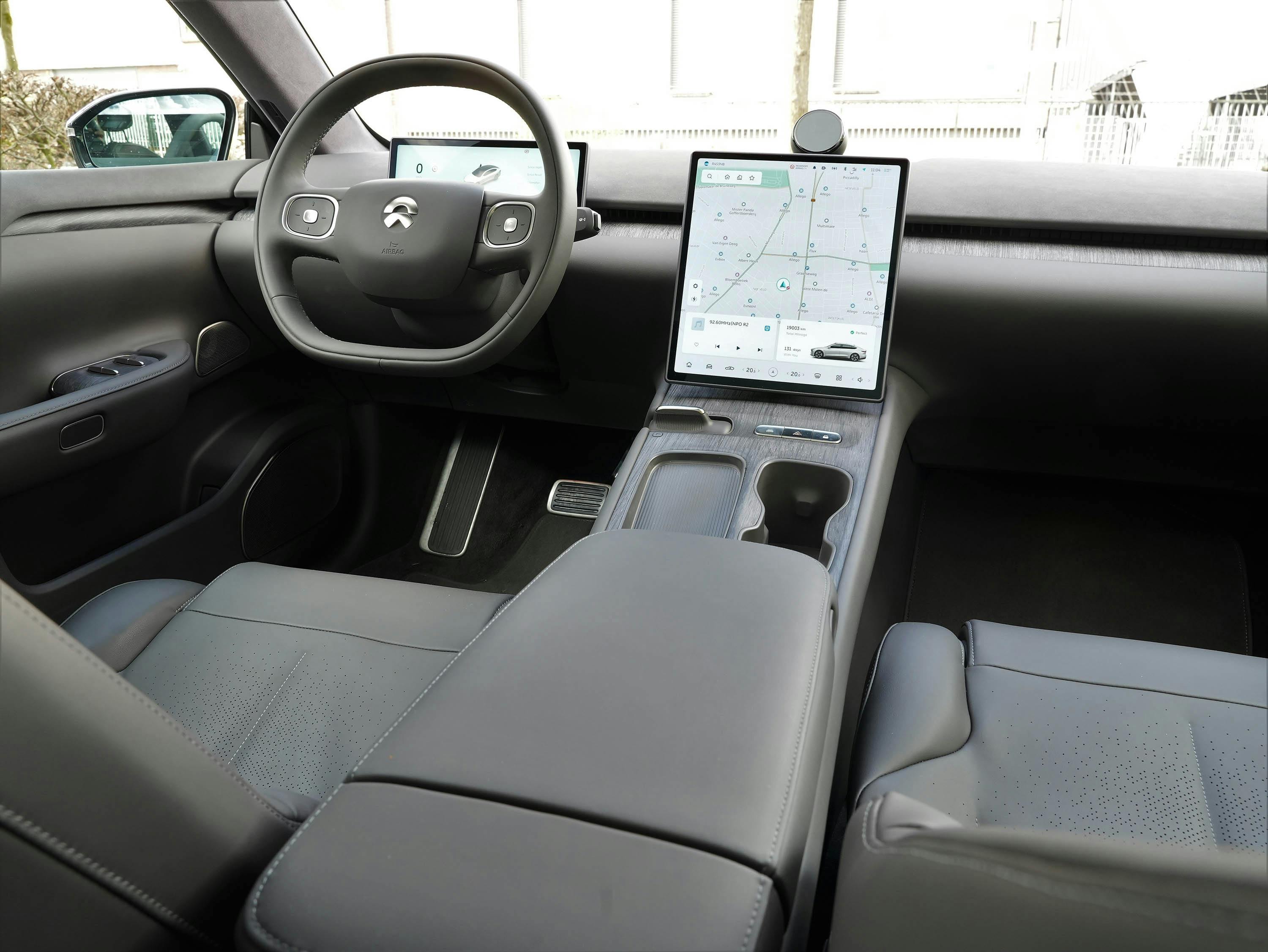 Kritiek is er ook. Je kunt bijvoorbeeld maar 367 liter bagage in de kofferbak kwijt. De bediening van veruit de meeste functies verloopt via het centrale touchscreen, zelfs de verstelling van de buitenspiegels en het stuur. Het multimediasysteem heeft weliswaar een overzichtelijke lay-out, maar door de gigantische hoeveelheid keuzemogelijkheden leer je jezelf niet in een week de weg kennen. De Nio ET7 is volgeladen met elektronische snufjes die het rijden moeten vergemakkelijken.