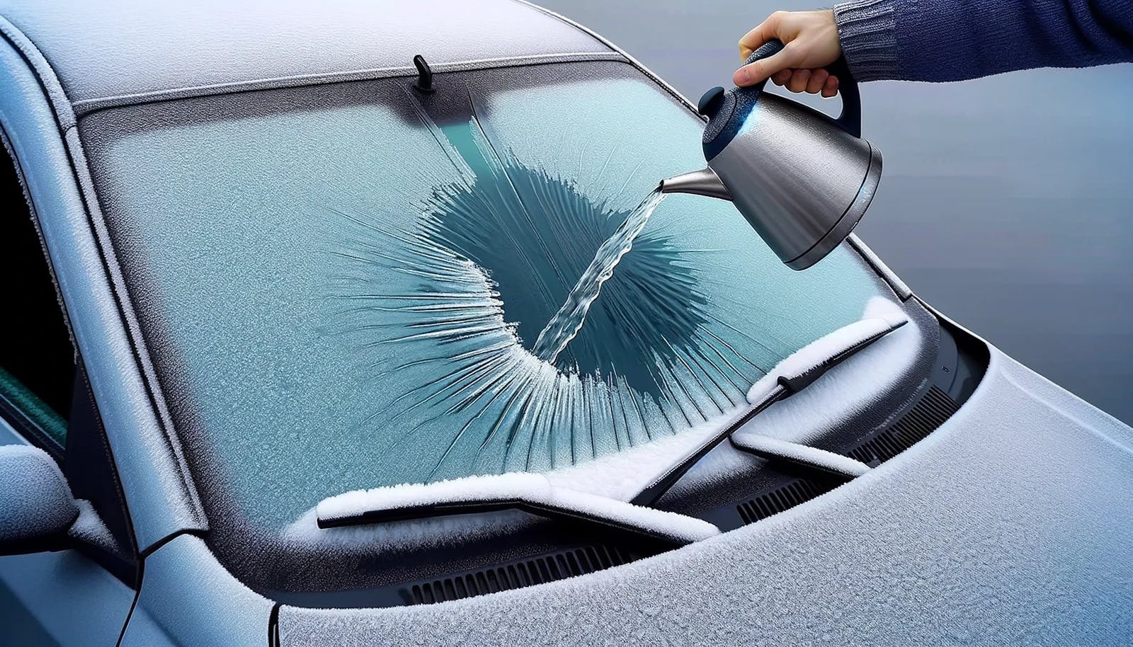 Het lijkt misschien verleidelijk om even snel kokend heet water over de ruiten te gieten. Je ziet het ijs voor je ogen wegsmelten, dus het werkt. Toch? Dat wel, maar door de plotselinge temperatuurverandering kunnen er barstjes ontstaan in het glas. En zit er eenmaal een barst, dan moet je helemaal oppassen. Hoe groter het temperatuurverschil, des te groter namelijk de kans dat een barst verder scheurt. Dus als jij in de auto de verwarming lekker hoog zet omdat het buiten vriest … enfin, we hoeven het niet uit te leggen. Niet aan de slag met heet water dus!