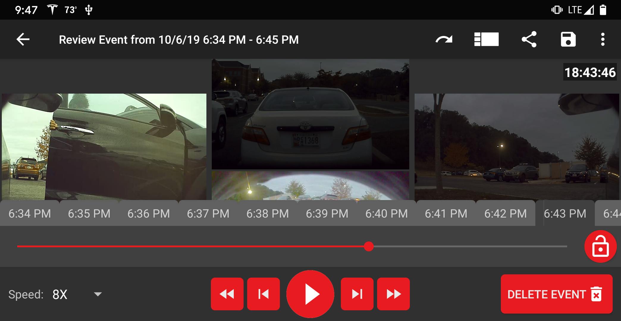 Wanneer je ergens tegenaan zit, gaat de Sentry Modus aan, waarbij wordt bewaard wat er gebeurt. Er is een rood puntje toegevoegd wanneer je de video afspeelt, zodat je snel ziet wanneer het misging.