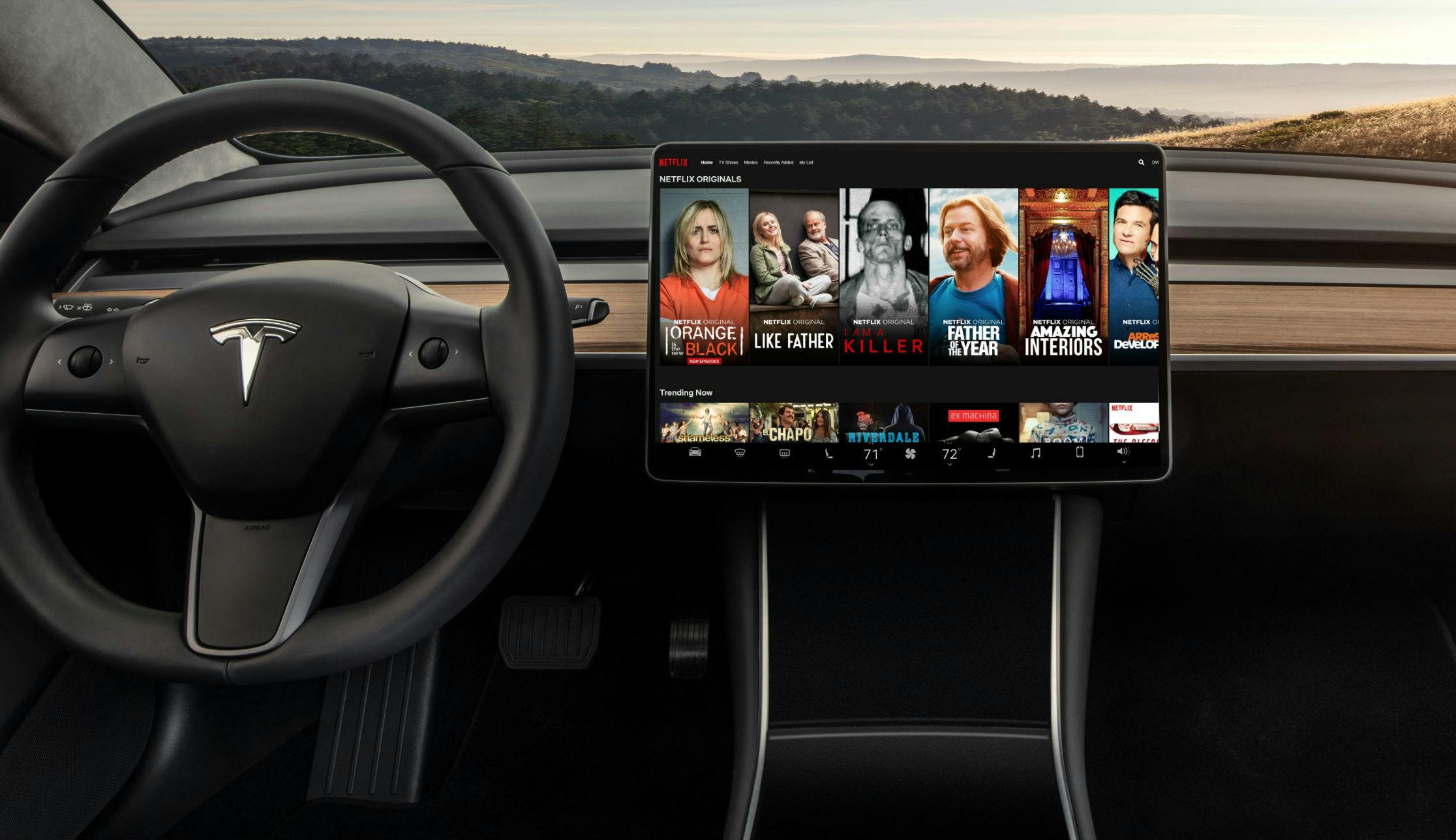 De grote displays van Tesla’s auto’s maken ze zeer geschikt om te streamen. Wanneer je ergens geparkeerd staat om bijvoorbeeld op iemand te wachten, kun je met Tesla Theater kijken naar een aflevering van een serie op Netflix, een film op YouTube of een serie op Hulu.