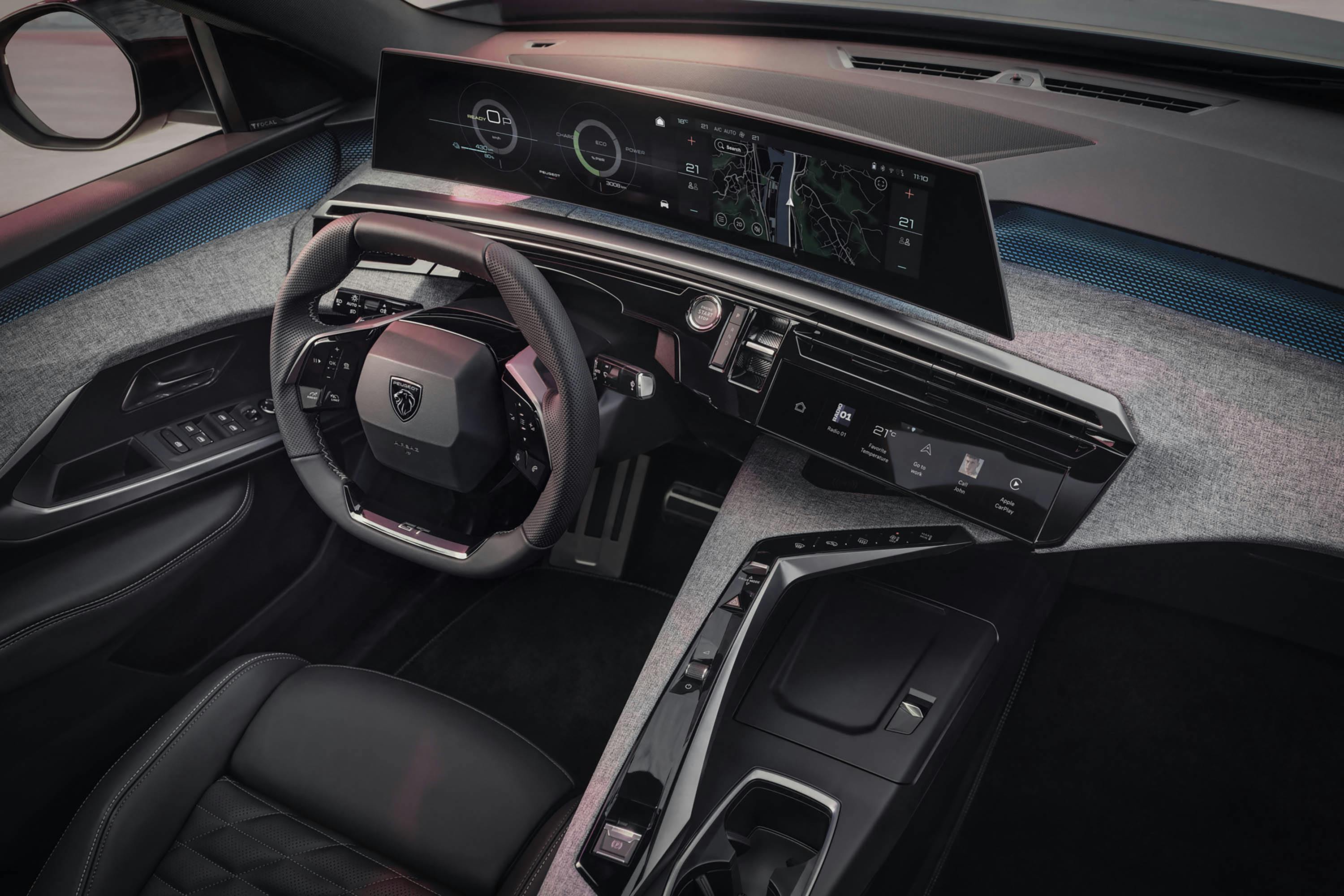 Lekker compleet dus, en dat geldt ook voor het interieur, want zeker op het vlak van design in combinatie met opbergruimte en afwerking staat de e-3008 aan de top van zijn segment. De AGR-gecertificeerde stoelen zitten fantastisch en ook de geluidsisolatie is helemaal op orde. Het panoramische display is een sieraad om naar te kijken, zij het dat we daar direct op een pijnpunt stuiten. Ondanks de nieuwste Stellantis-technologie laat de responsiviteit te wensen over en blijkt ook de stabiliteit (van onder andere bluetooth) ondermaats. Wel is het fijn dat het navigatiesysteem over EV-routeplanning beschikt en dat Apple CarPlay (draadloos) aanwijzingen van bijvoorbeeld Google Maps, evenals de kaart, op het bestuurdersdisplay kan tonen.