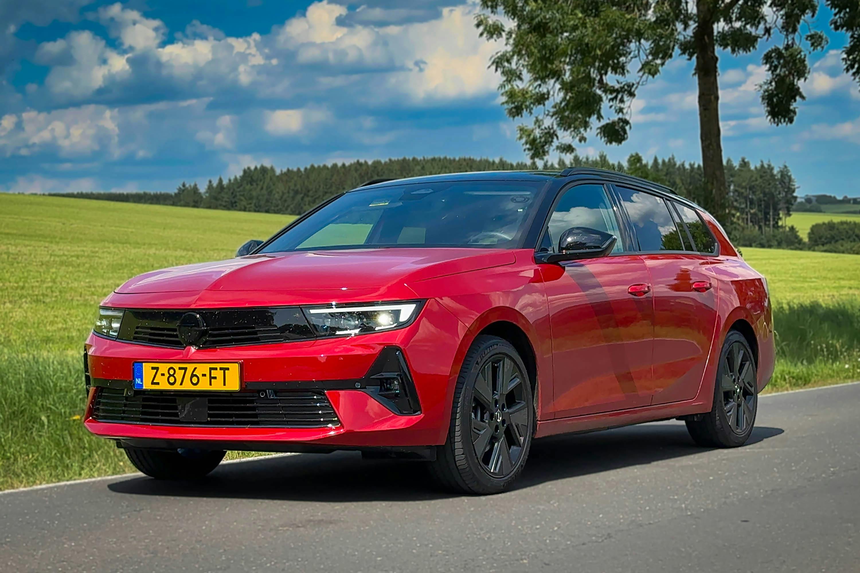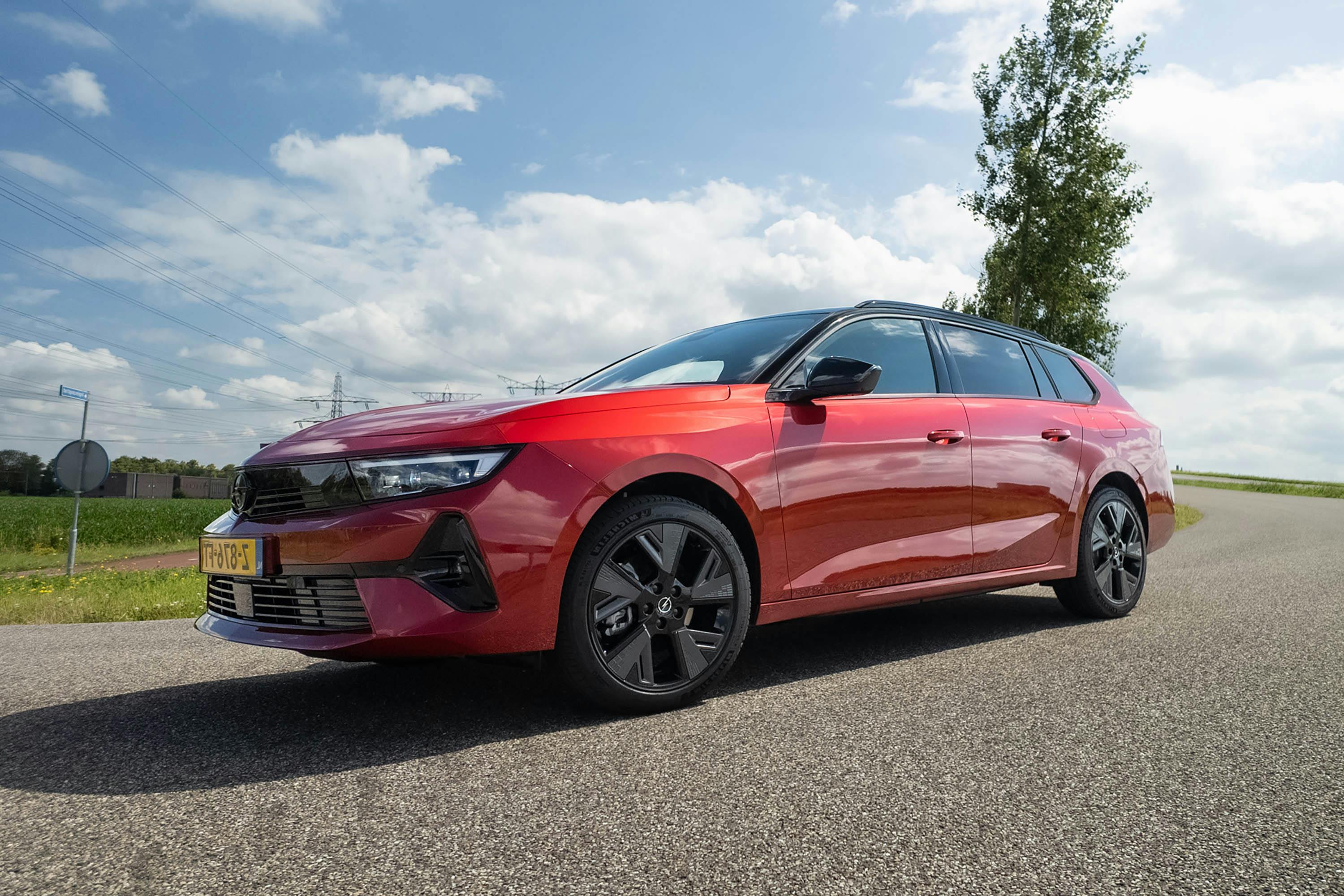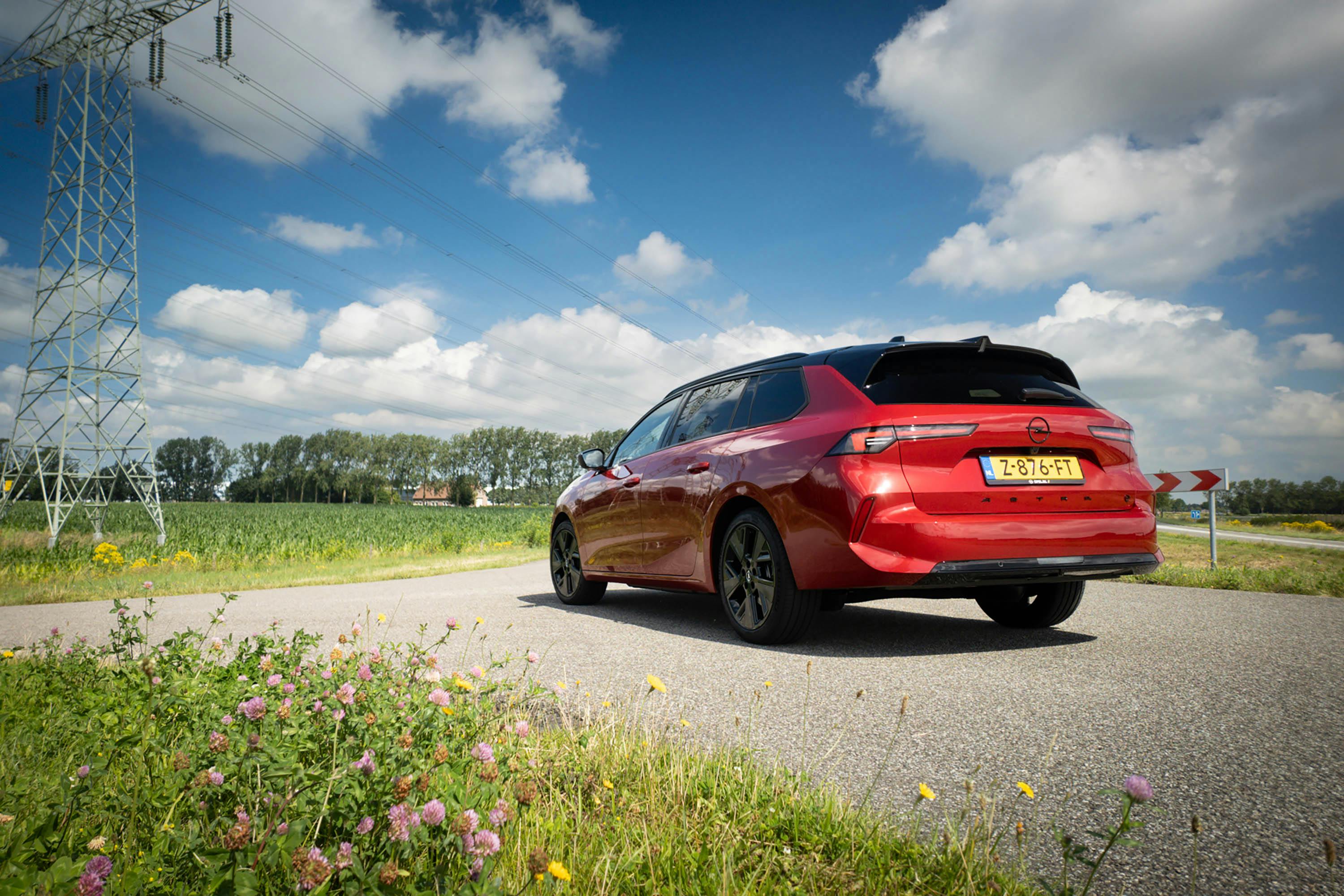 De geteste 'Crimson Red' Astra Electric Sports Tourer in GS-Line-uitvoering is een lust voor het oog. Het Black Pack, met zwarte accenten op dak, raamomlijsting en letters op de achterklep, geeft de auto een extra sportieve uitstraling. In combinatie met de sportievere GS-voorbumper, extra getint glas vanaf de B-stijl en de 17-inch lichtmetalen velgen staat er een strakke auto voor je neus die zowel sportief als representatief oogt.