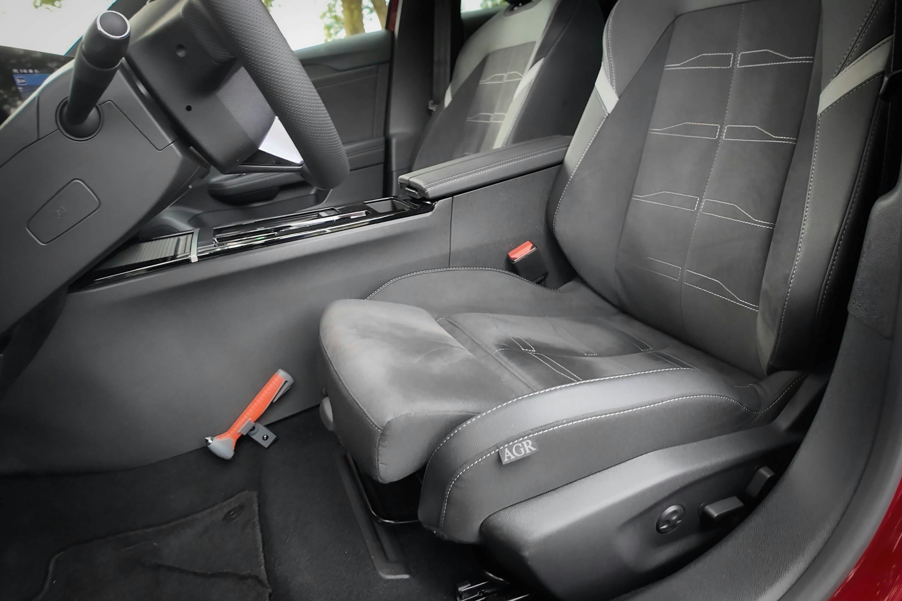 Zodra je instapt, ervaar je dat typische Opel Astra-gevoel. Je zit laag, merkt direct een sportieve zitpositie en de instelbaarheid van alle componenten is dik in orde. Een sterk punt zijn de AGR-gecertificeerde stoelen met een verlengbaar zitvlak voor de bestuurdersstoel, standaard in de GS-uitvoering, maar optioneel in minder rijk uitgeruste Astra's. Ook standaard en zeer comfortabel zijn de stoel- en stuurwielverwarming.