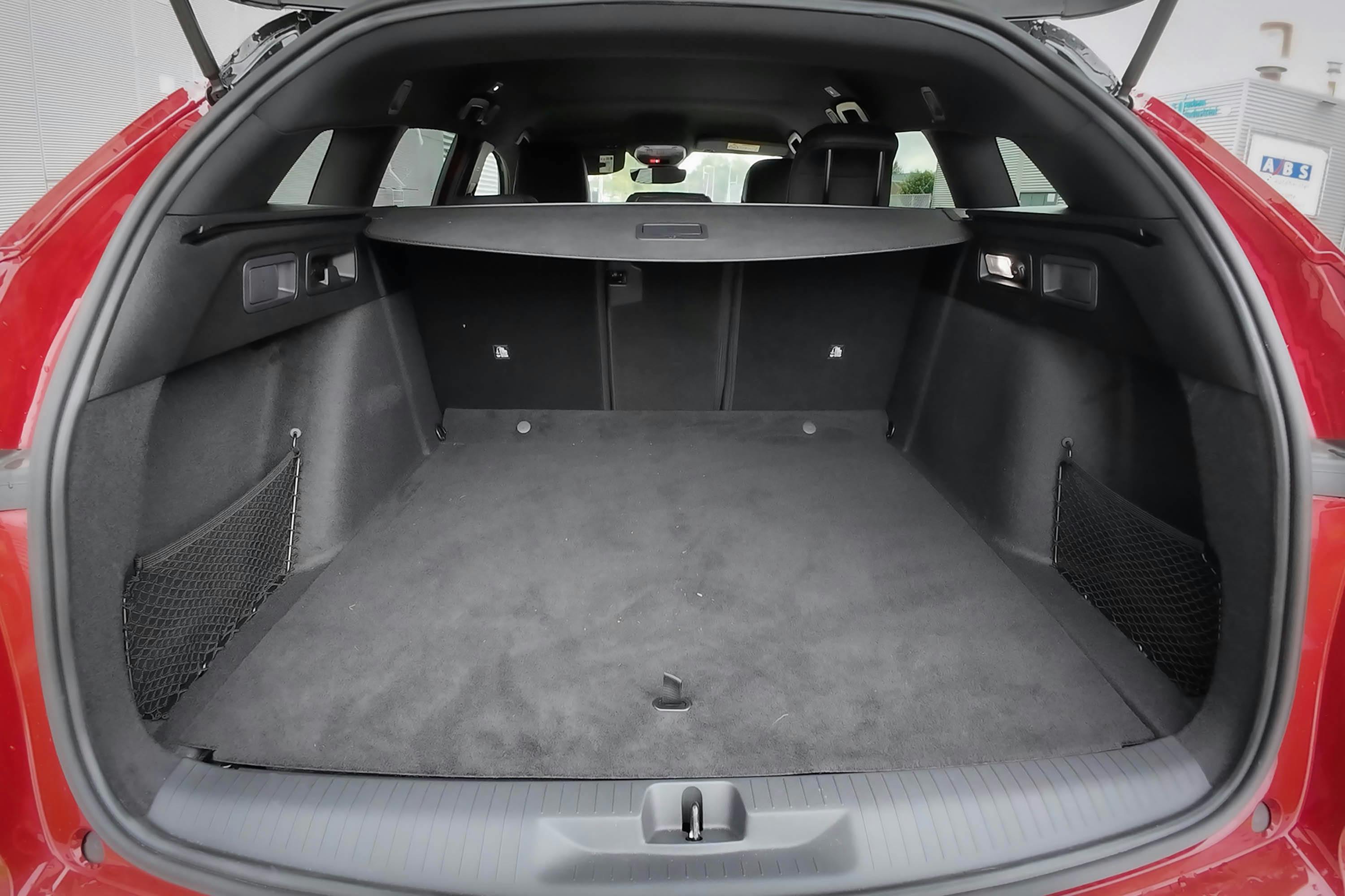 Achter in de Astra Sports Tourer scoort hij gemiddeld qua ruimte. De zit is oké, maar de ruimte is net aan en ook het gebrek aan voetenruimte is opvallend, mede vanwege de aanwezigheid van een traditionele cardantunnel die bij een EV eigenlijk overbodig is. De kofferruimte is met een inhoud van 513 liter net iets kleiner dan bij een benzine-Astra. Na het neerklappen van de standaard 40:20:40-verdeelde achterbankleuning kun je maximaal 1,5 kuub kwijt. Het opbergen van de laadkabel kan met een beetje planning onder de vloer.