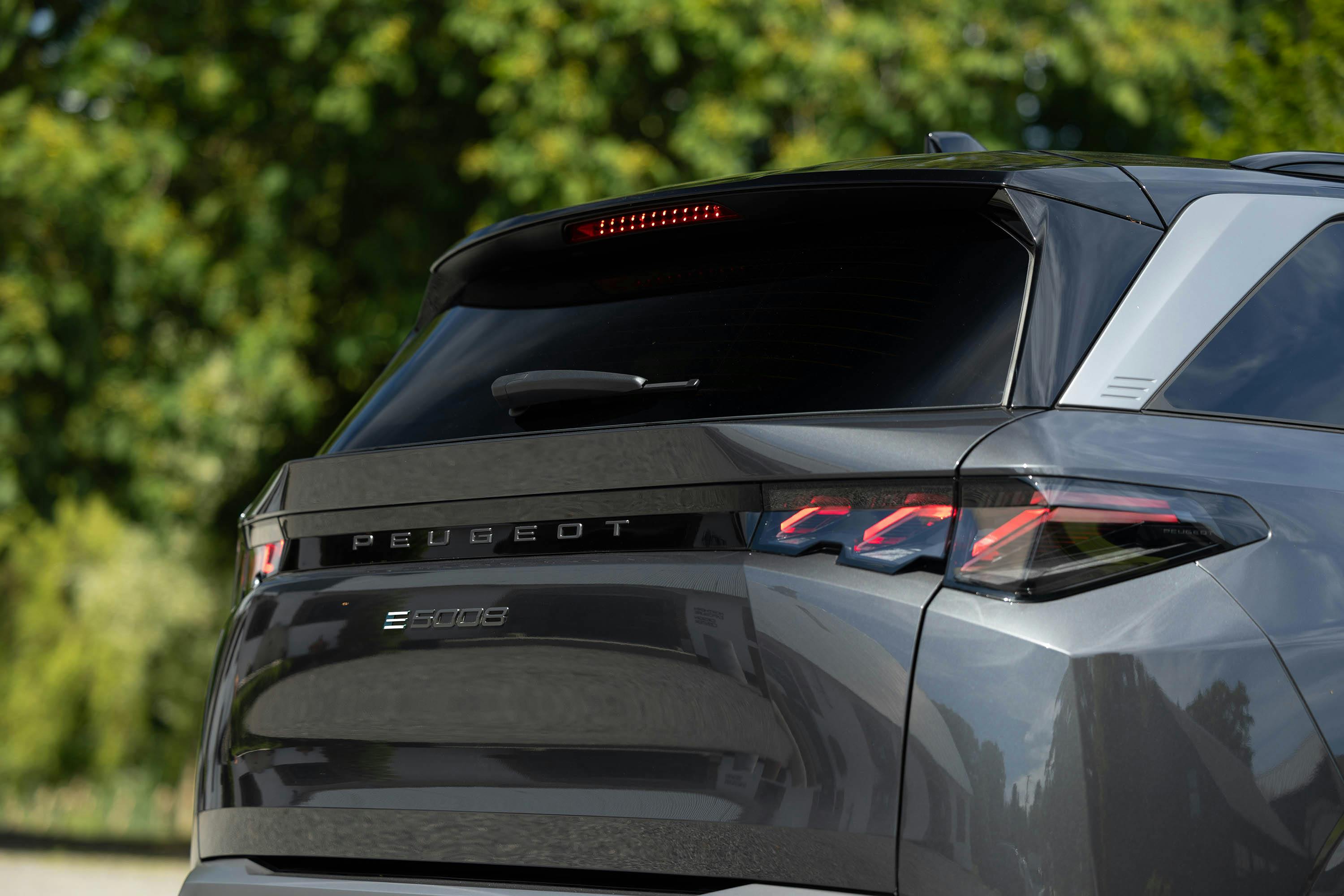 Het design van de E-5008 leunt sterk op dat van de E-3008. De auto heeft een karaktervol front met kenmerkende dagrijverlichting, koplampen en velgen tot 20 inch. Peugeot verlengde de wielbasis met maar liefst 27 cm voor extra ruimte, wat het totaal op 4,79 meter brengt. Daarmee is hij zo'n 4 centimeter langer dan de Model Y en zelfs 22 cm langer dan de Renault Scenic e-Tech. Net als bij de E-3008 ontbreekt de traditionele raamomlijsting, wat zorgt voor een eigentijds en rank ogend voorkomen.