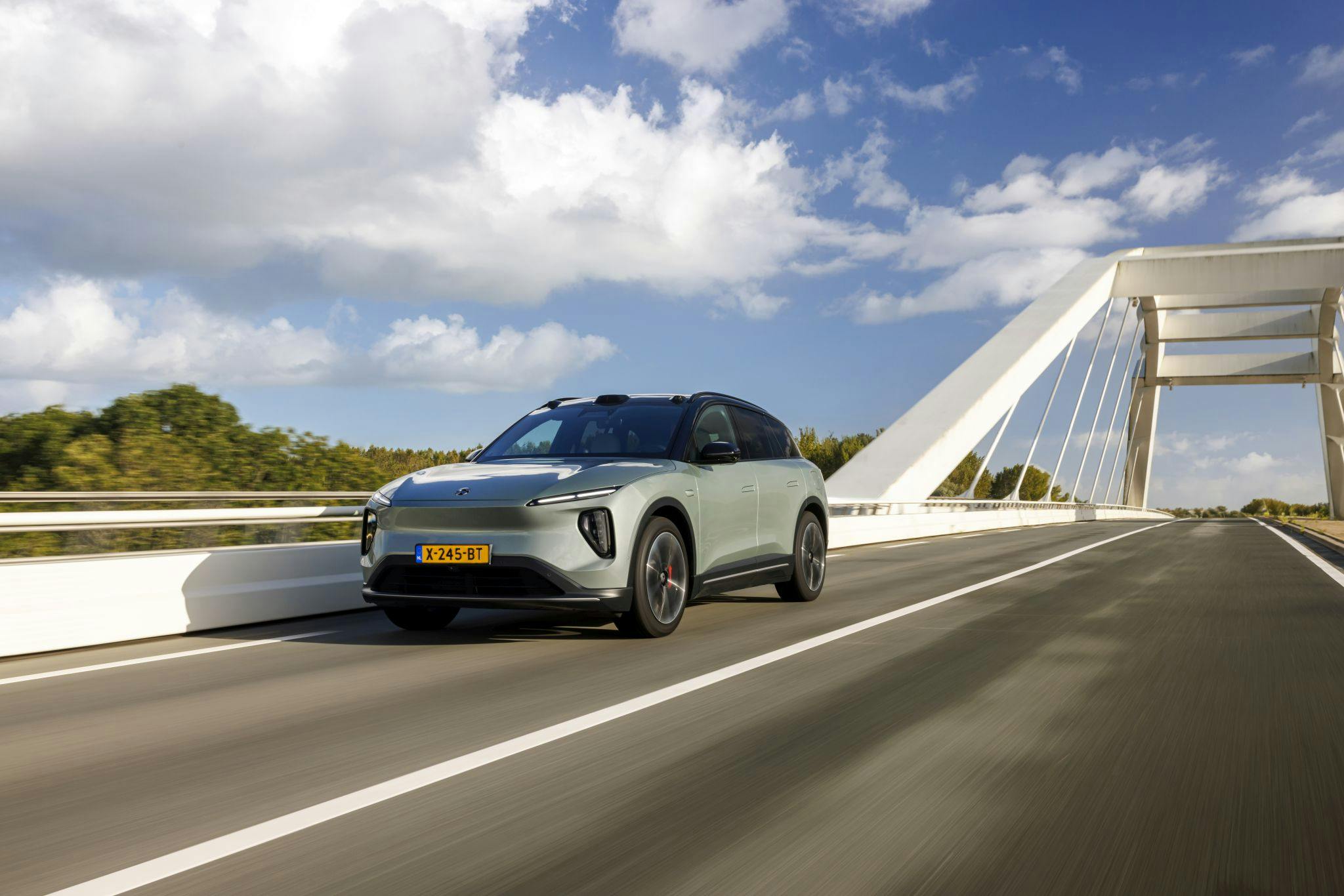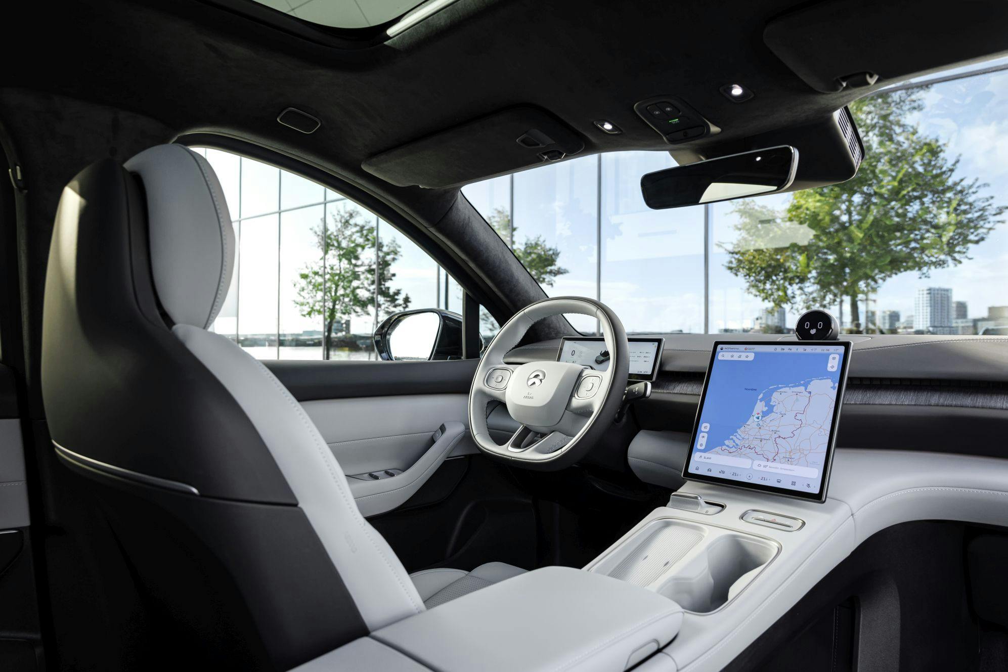 Of de veiligheids- en assistentiesystemen dan soelaas kunnen bieden? Ja, absoluut, want de recente update van de firmware van de auto heeft er echt voor gezorgd dat de kracht van Nio’s technologie tot zijn recht komt. Tal van sensoren, camera’s, maar voornamelijk de Lidar óp het dak zorgen ervoor dat de auto zich keurig op jouw rijstrook centreert. Ook is-ie in staat om semi-autonoom in te halen.