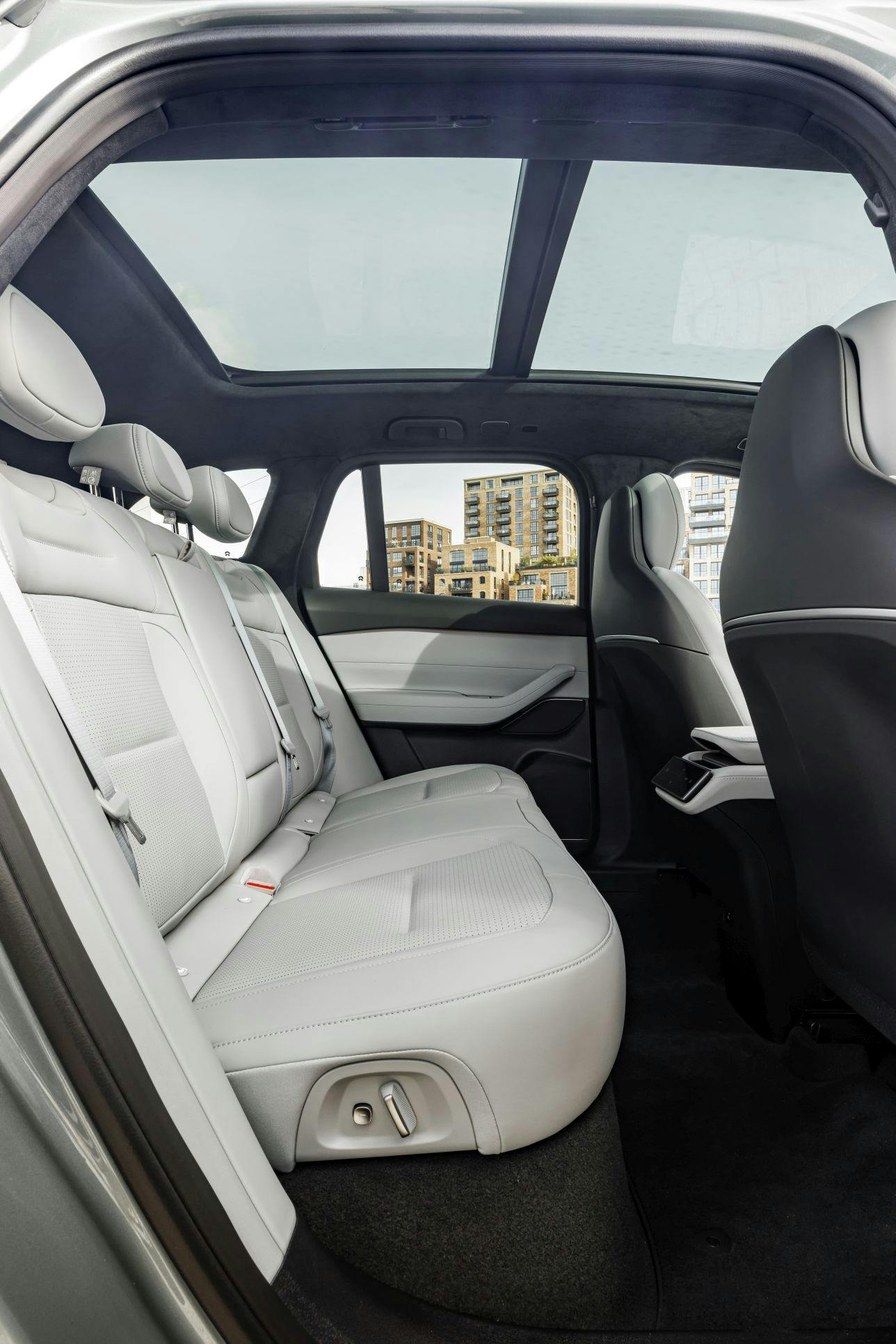 Ook de tweede zitrij is niet vergeten. Sterker nog, dat is misschien wel een van zijn sterkste punten. De goed gevormde achterbank zit erg comfortabel en zaken als een vlakke vloer, veel ruimte voor de bovenste én onderste ledematen en comfort als een eigen klimaatregeling maken het daar zeer aangenaam.